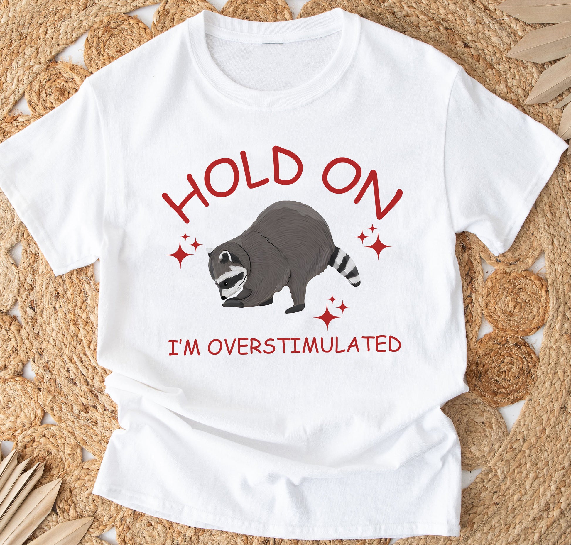 Coinnigh ort Táim Ró-spreagtha, T-léine Retro Greannmhar do Dhaoine Fásta, Léine Racún Greannmhar, Léine Meme, Léine Cadáis Suaimhnithe, Bronntanais Cairde Greannmhar