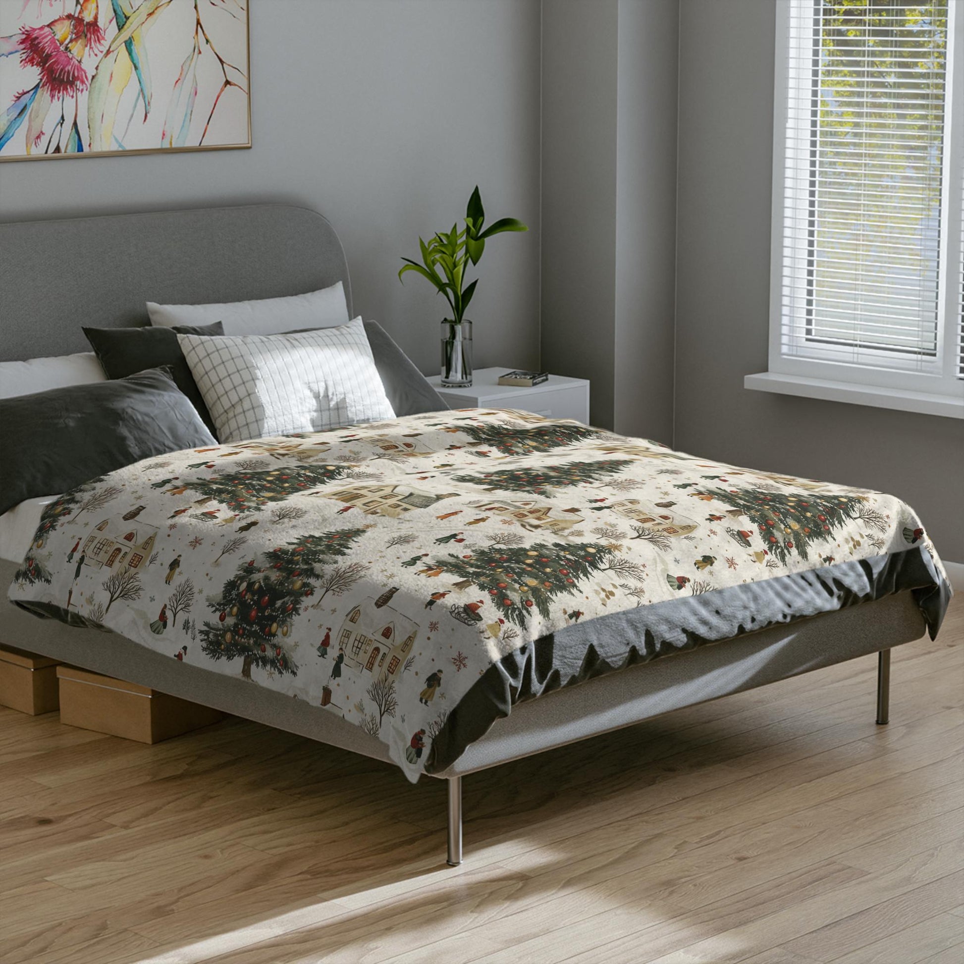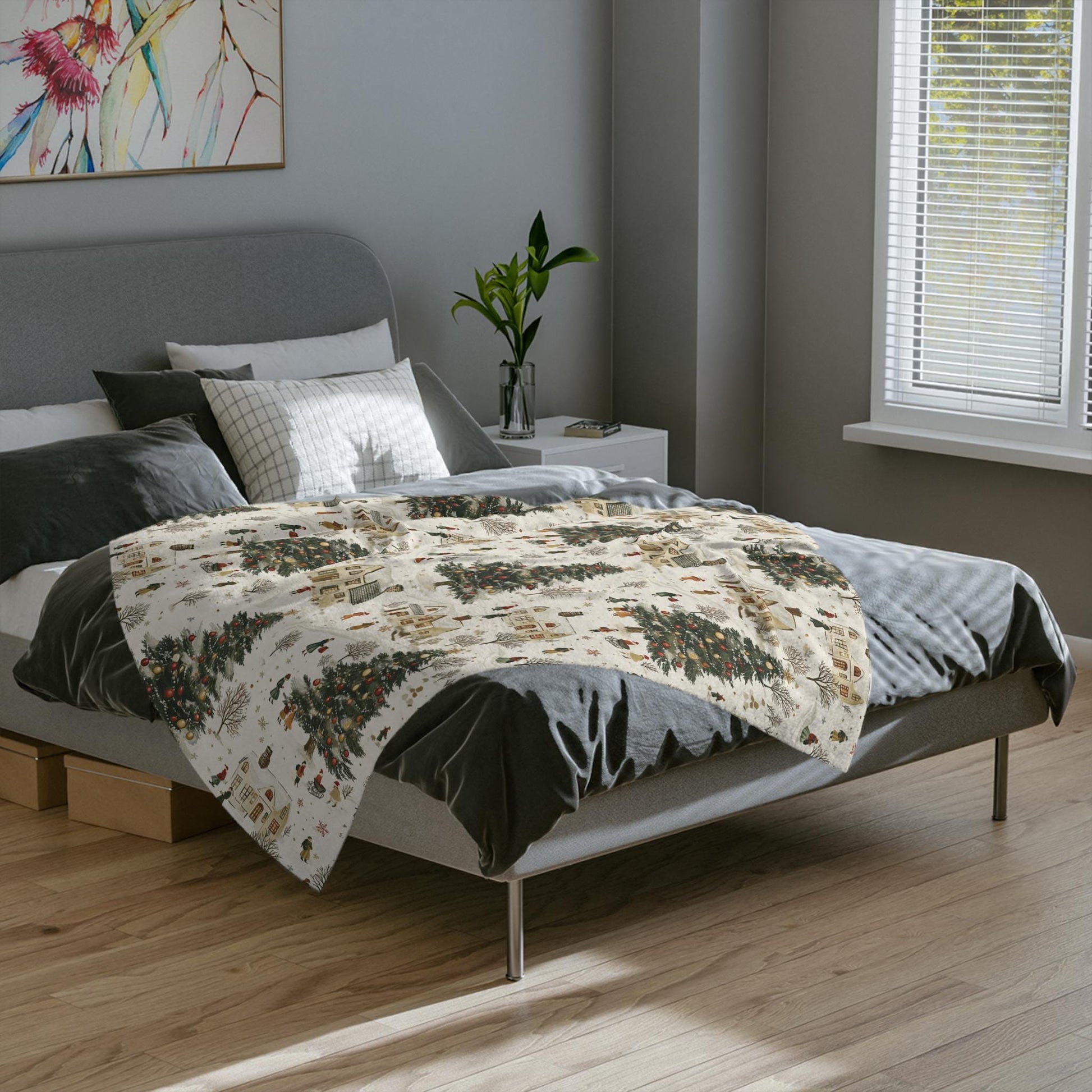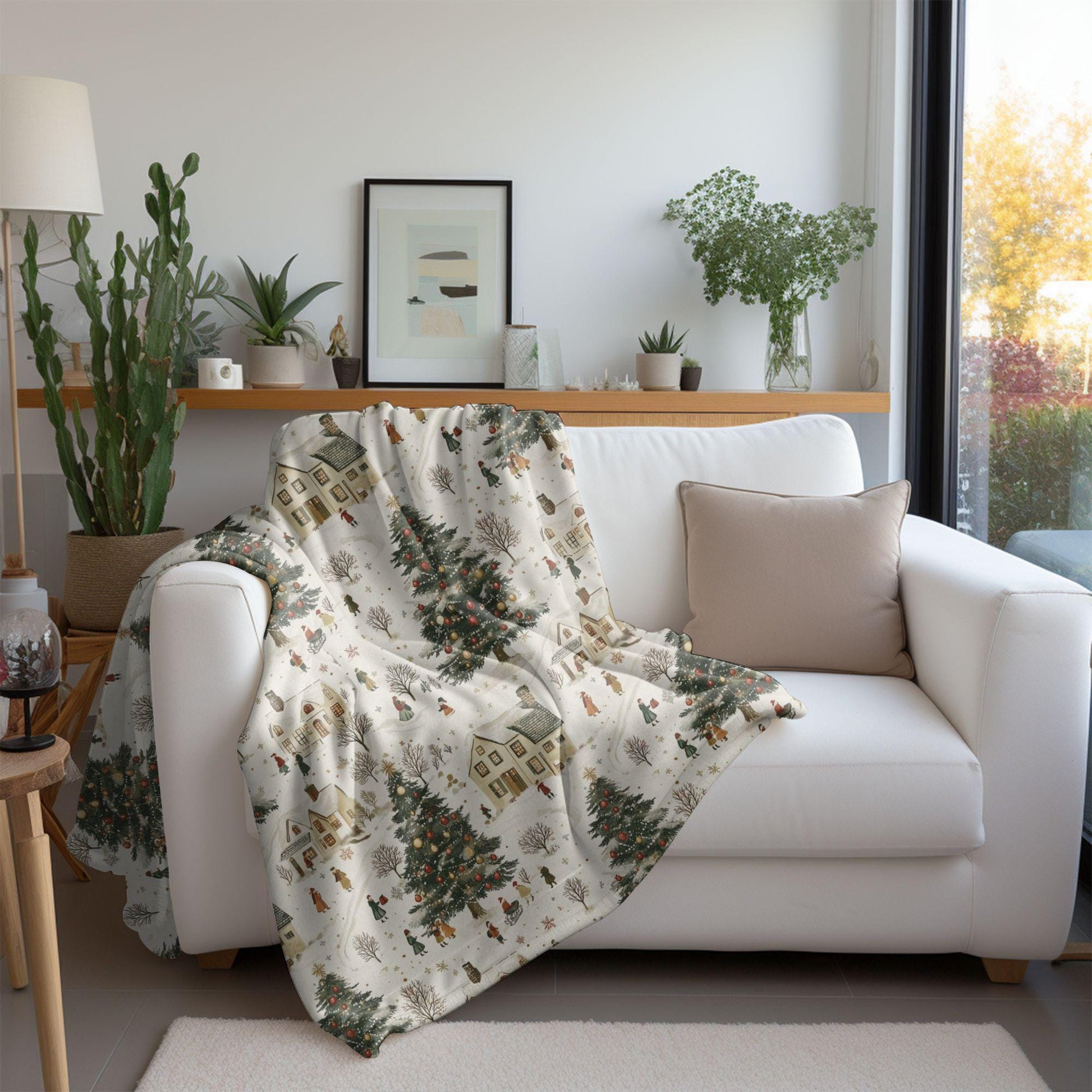 Holiday Village Blanket Christmas Trees Fleece Throw Christmas Village Home Decor Lap Blanket Christmas Gift for Family Friends Coworkers