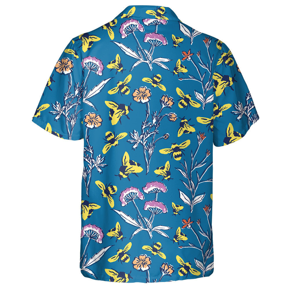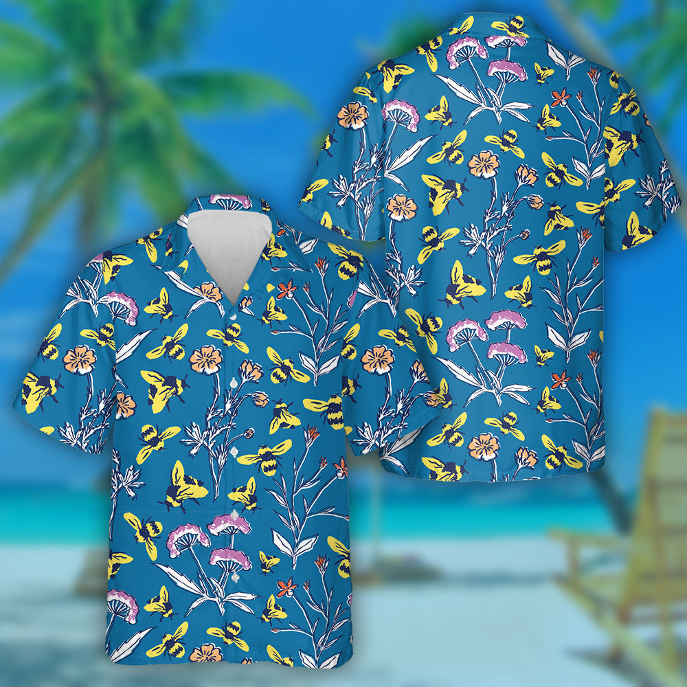 Bee Mil Agus Móinéir Earraigh ar Chúlra Gorm Léine Haváí, Bronntanas Léine Haváíais, Bronntanas Nollag