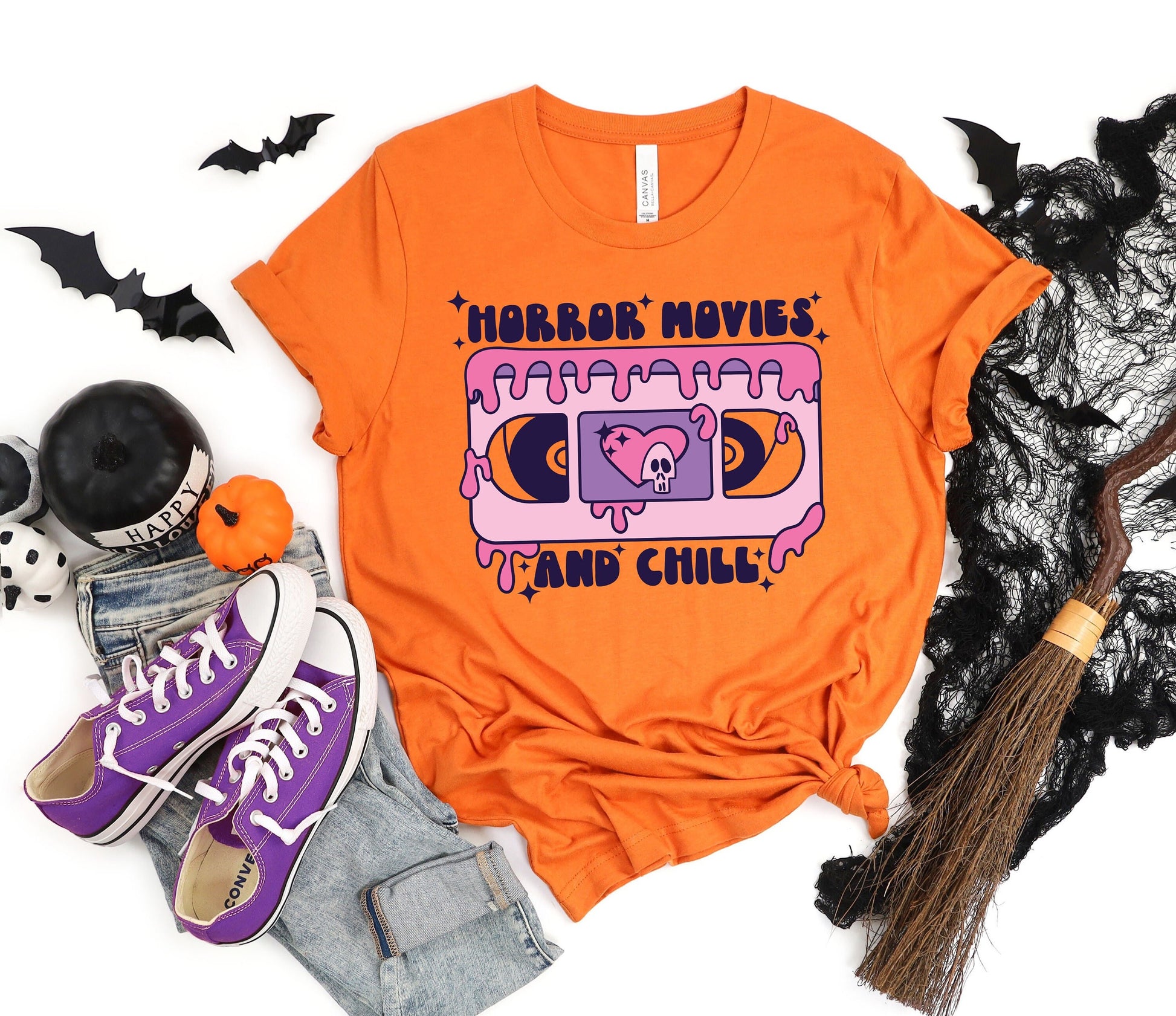 Horror Movies Shirt, Horror Movies and Chill Distressed Shirt, Boo, Halloween Shirt, Spooky Season, Pumpkin T-Shirt, Halloween Night Shirt