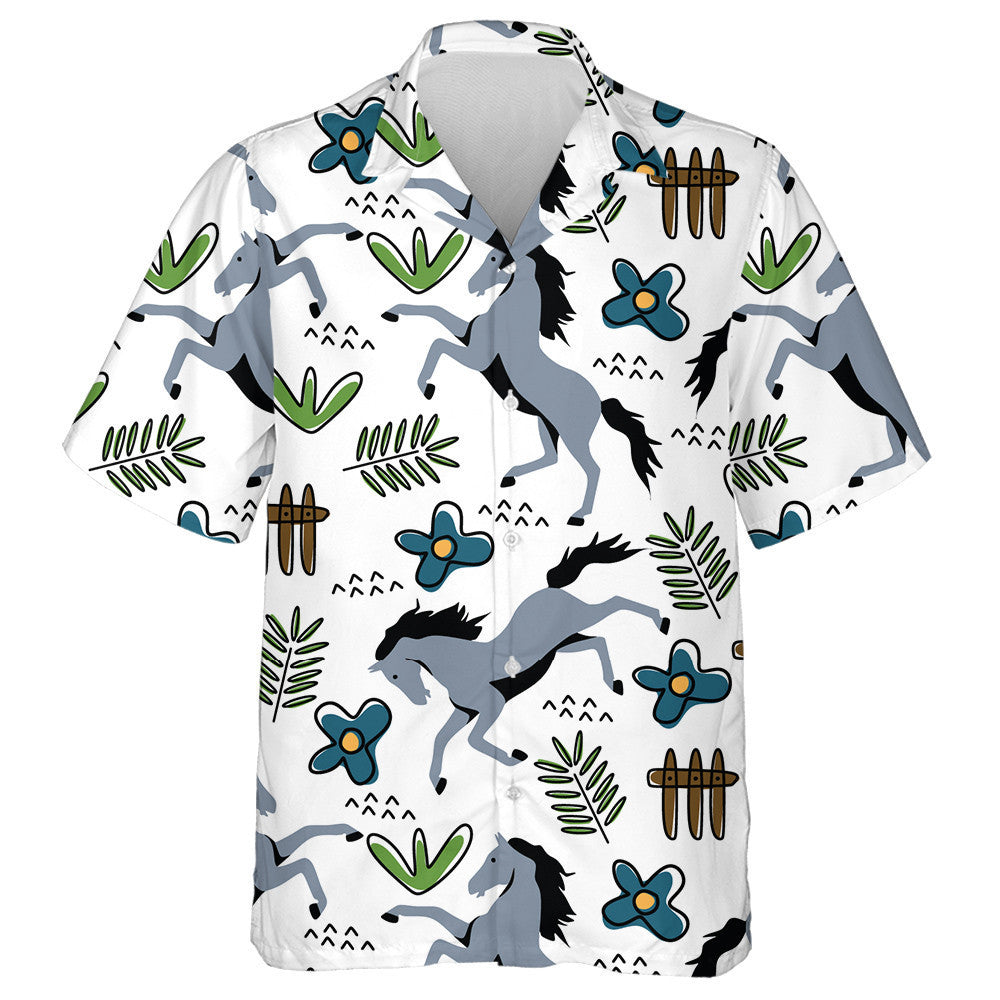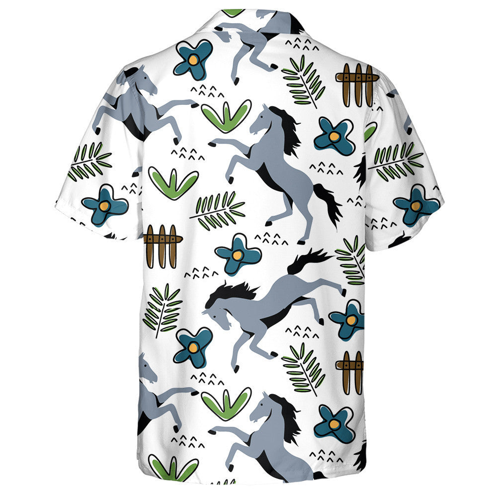 Capall Lámh Tarraingthe Agus Flóra i Stíl Chartúin Léine Haváís, Bronntanas Léine Haváíais, Bronntanas Nollag