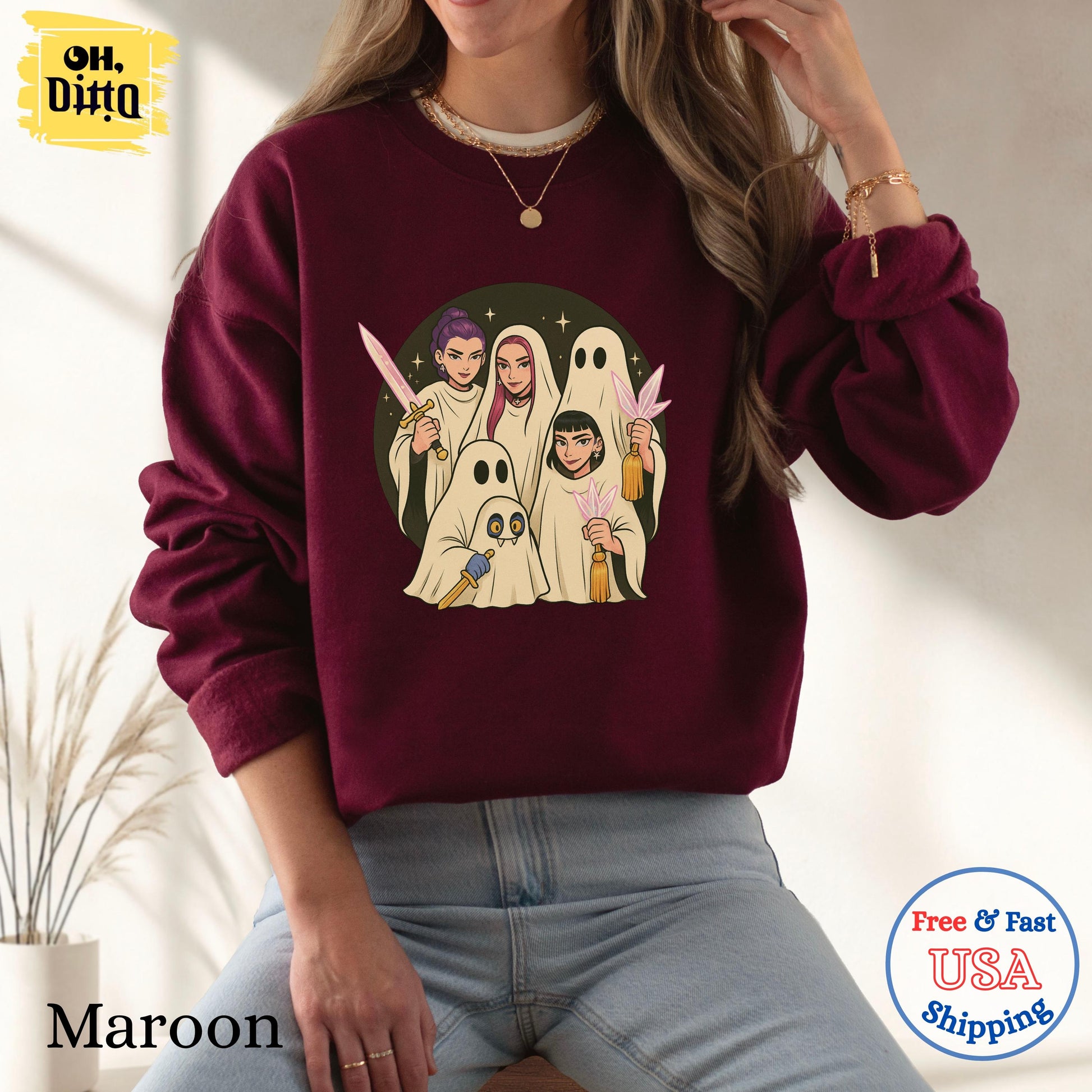 Huntrix Spooky Seoson Hoodie, Girly Ghost Hunters Demon Derpy the Tiger Sweatshirt, Huntrix Fan Tee, Halloween Gift