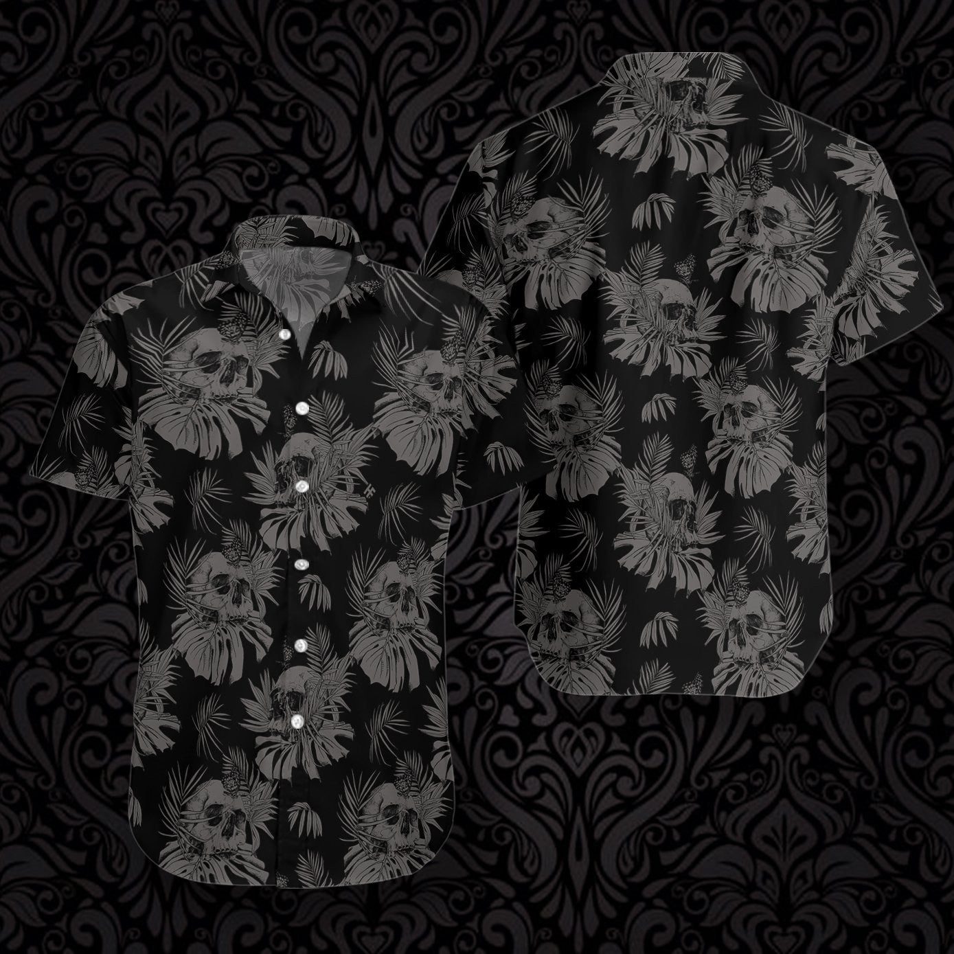 Skull Gotach Gan uaim Idéalach Le Goth Féileacán Dearadh Léine Haváís, Bronntanas Léine Haváís, Bronntanas Nollag