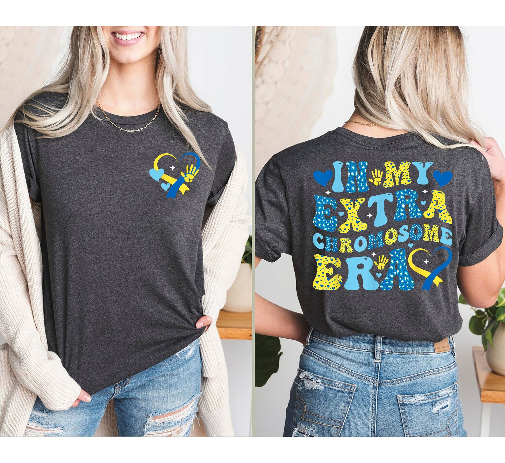 I mo Gheansaí Ré Crómasóm Breise, Cochaillín Feasachta ar Shiondróm Down, Léine Siondróm Down T21, Ribín Gorm Buí, Trodaí Síos, Léine Tacaíochta