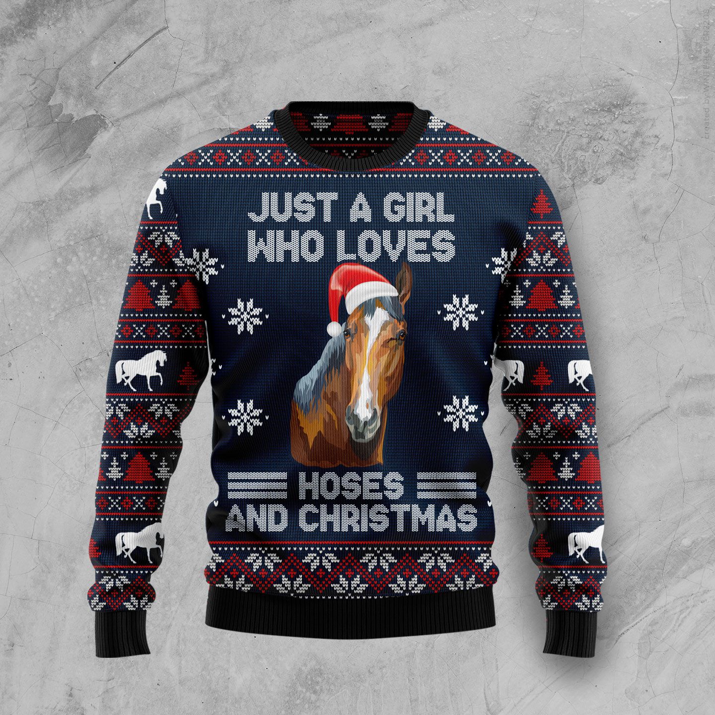Cailín a bhfuil grá aici do chapall agus geansaí Nollag gránna Nollag, geansaí Nollag gránna, bronntanas Nollag, bronntanas Nollag 2022