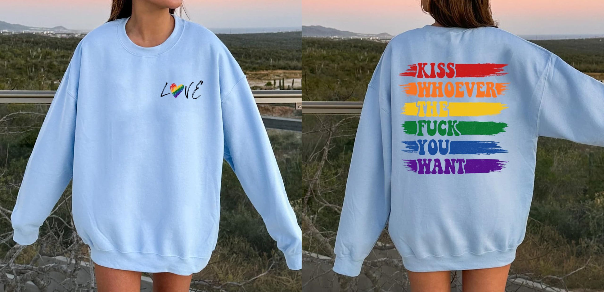 Póg Cé An Fuck A Theastaíonn Geansaí uait - geansaí Leispiach 2 Thaobh LGBTQ Pride