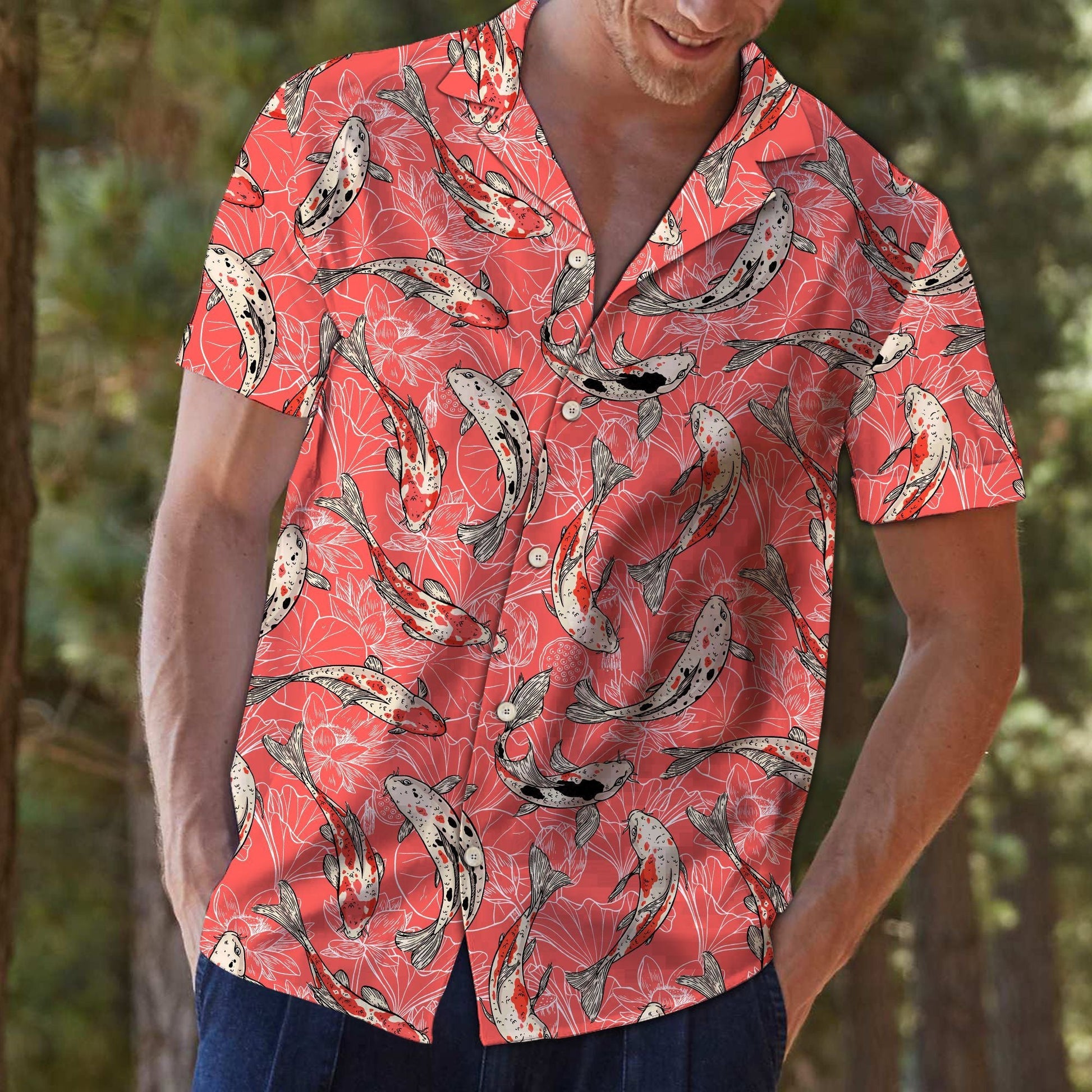 Bláthanna Lámhtharraingthe Éisc Koi I Léine Coiréil Haváís, Bronntanas Léine Haváíais, Bronntanas Nollag