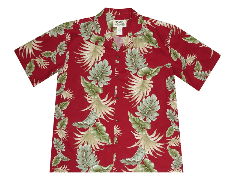 Cnaipe Dearg Ky'S Mens Léine Haváis Dúin Le Duilleoga Glasa Haváís, Bronntanas Léine Haváíais, Bronntanas Nollag