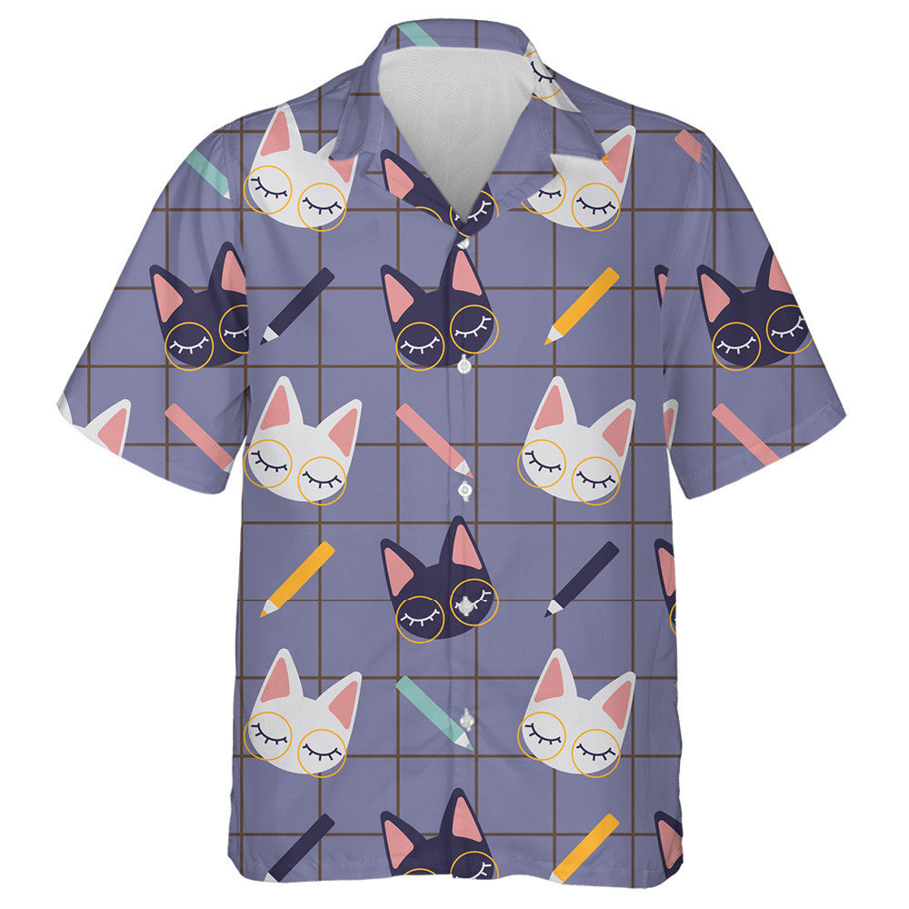 Gleoite ag déanamh staidéir ar chait agus ar phinn luaidhe ar Léine haváíais checkered, bronntanas Léine haváíais, bronntanas Nollag