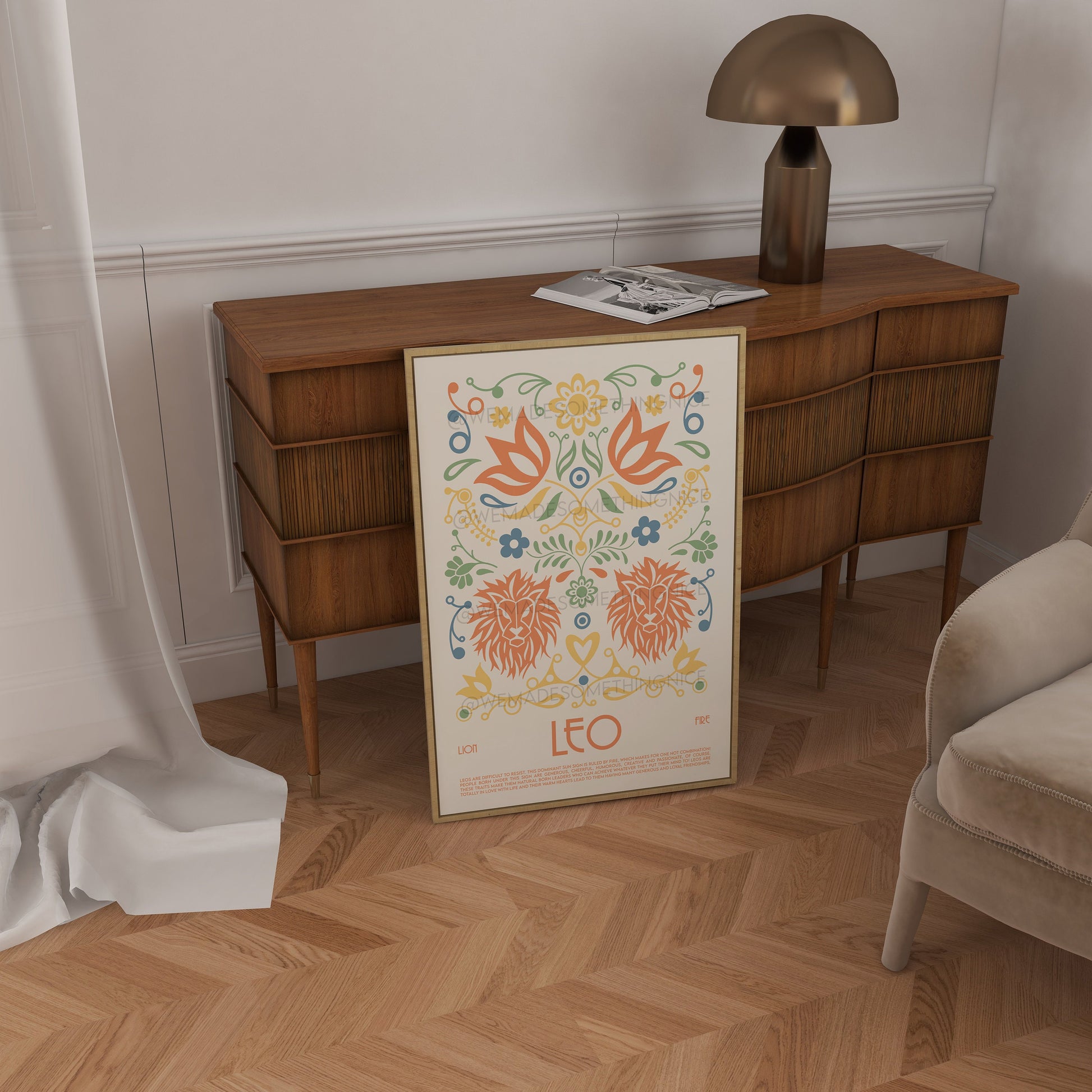 Leo Poster, Horoscope Print, Astrological Wall Art, Tarot, Exhibition Poster, Zodiac Poster, Birthday Present, Boho, Housewarming, Bedroom