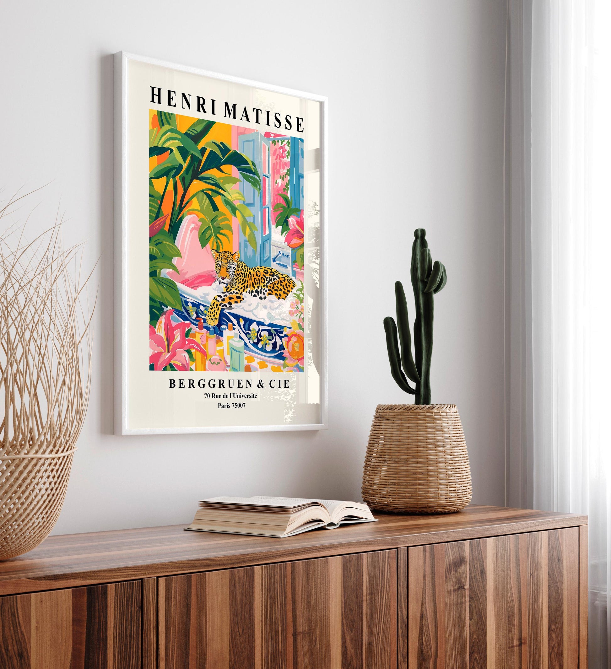 Leopard in Bathtub Art Print: Henri Matisse Style Bathroom Wall Decor