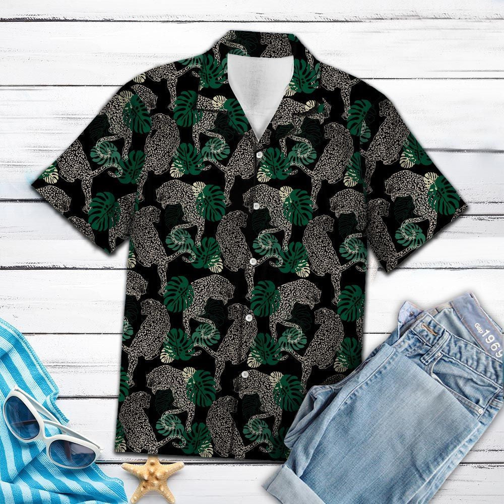Duilleoga Monstera Liopard In Deep Forest Green Léine Haváís, Bronntanas Léine Haváís, Bronntanas Nollag