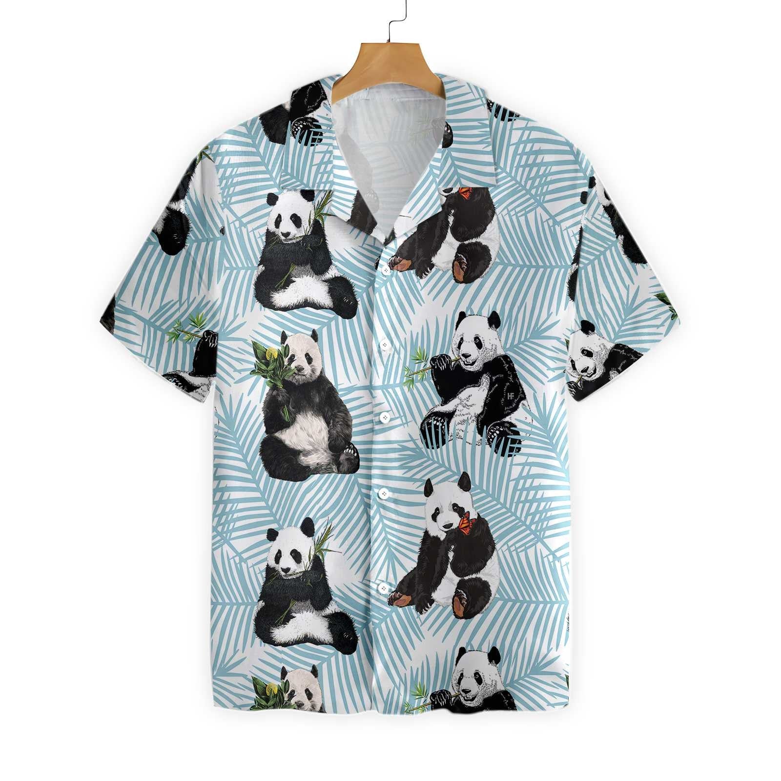 Dearadh Éadrom Spéir Gorm Léine Haváís Panda Ar Dhuilleoga Palm, Bronntanas Léine Haváíais, Bronntanas Nollag