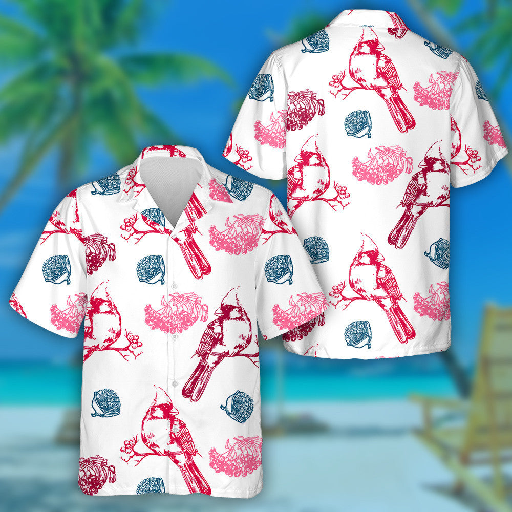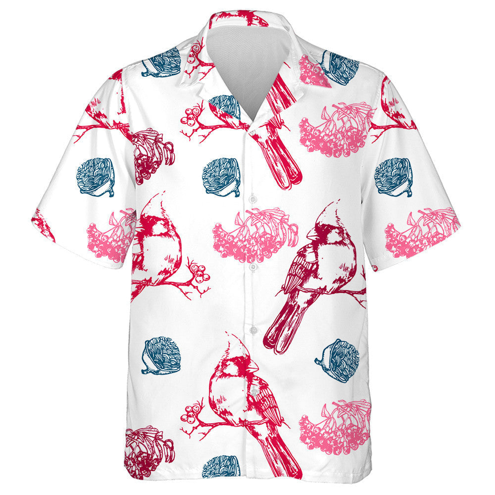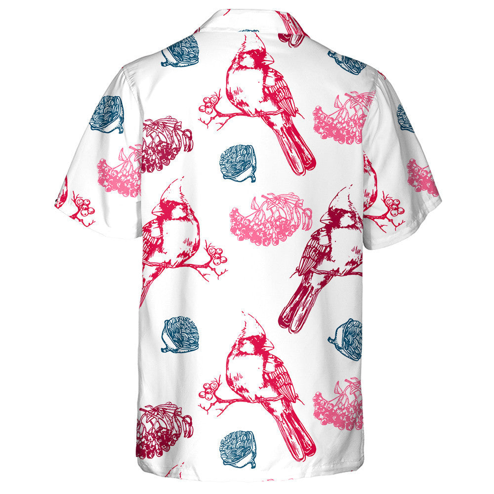 Éan Cairdinéal Dearg Beag Greannmhar Líníocht Láimhe Léine Haváís, Bronntanas Léine Haváíais, Bronntanas Nollag