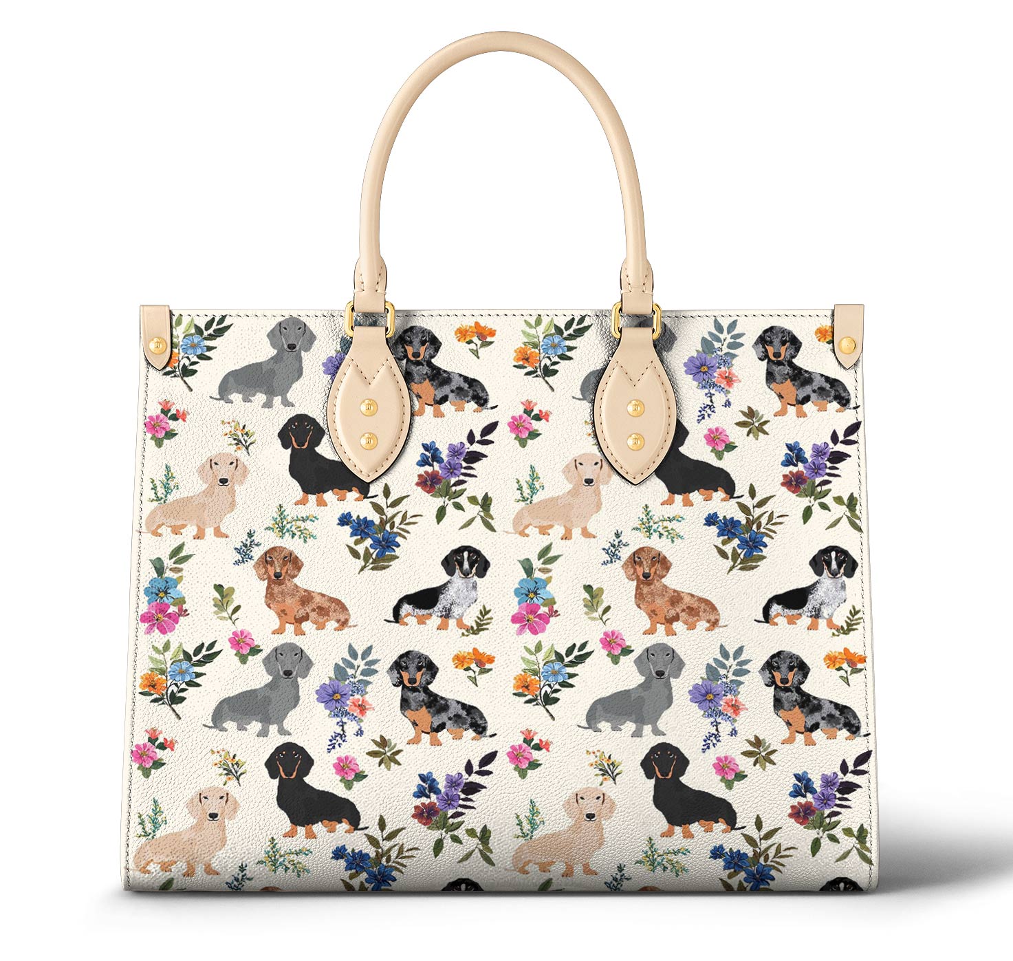 Leather Bag Charming Floral Dachshunds