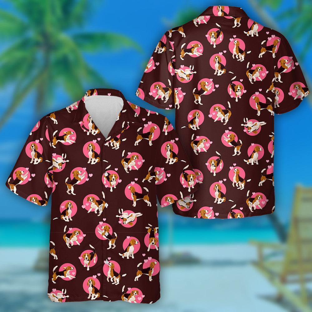 Grá Madra Beagle Greannmhar Ar Léine Haváí Donn Agus Bándearg, Bronntanas Léine Haváíais, Bronntanas Nollag