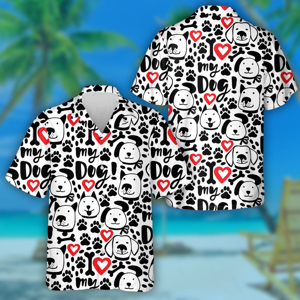 Grá Mo Chroí Madra Agus Aghaidheanna Greannmhar Madra Léine Haváís, Bronntanas Léine Haváís, Bronntanas Nollag