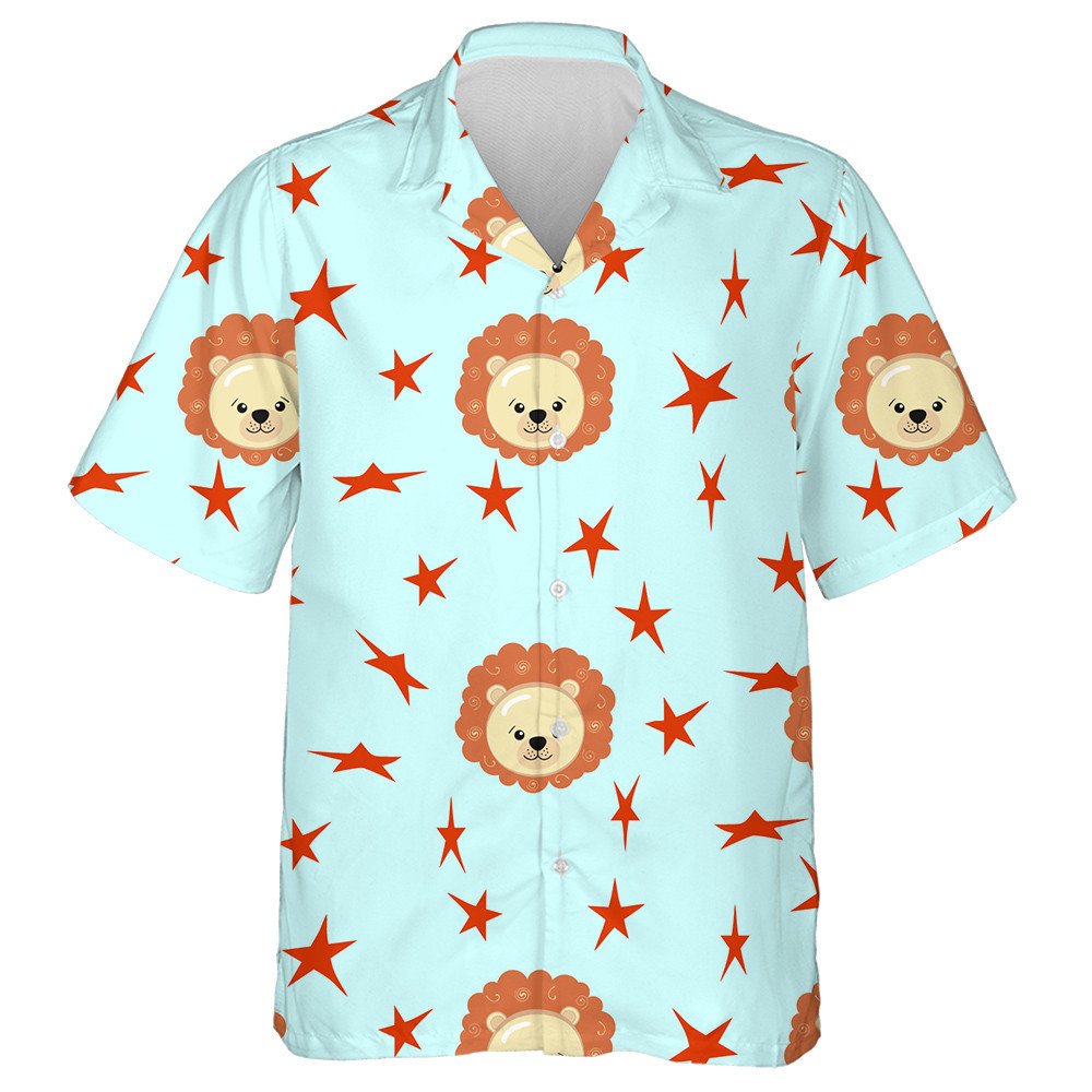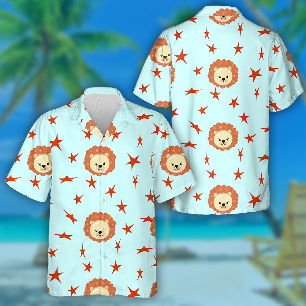 Lion Álainn Agus Réaltaí Dearga ar Chúlra Gorm Léine Haváí, Bronntanas Léine Haváíais, Bronntanas Nollag