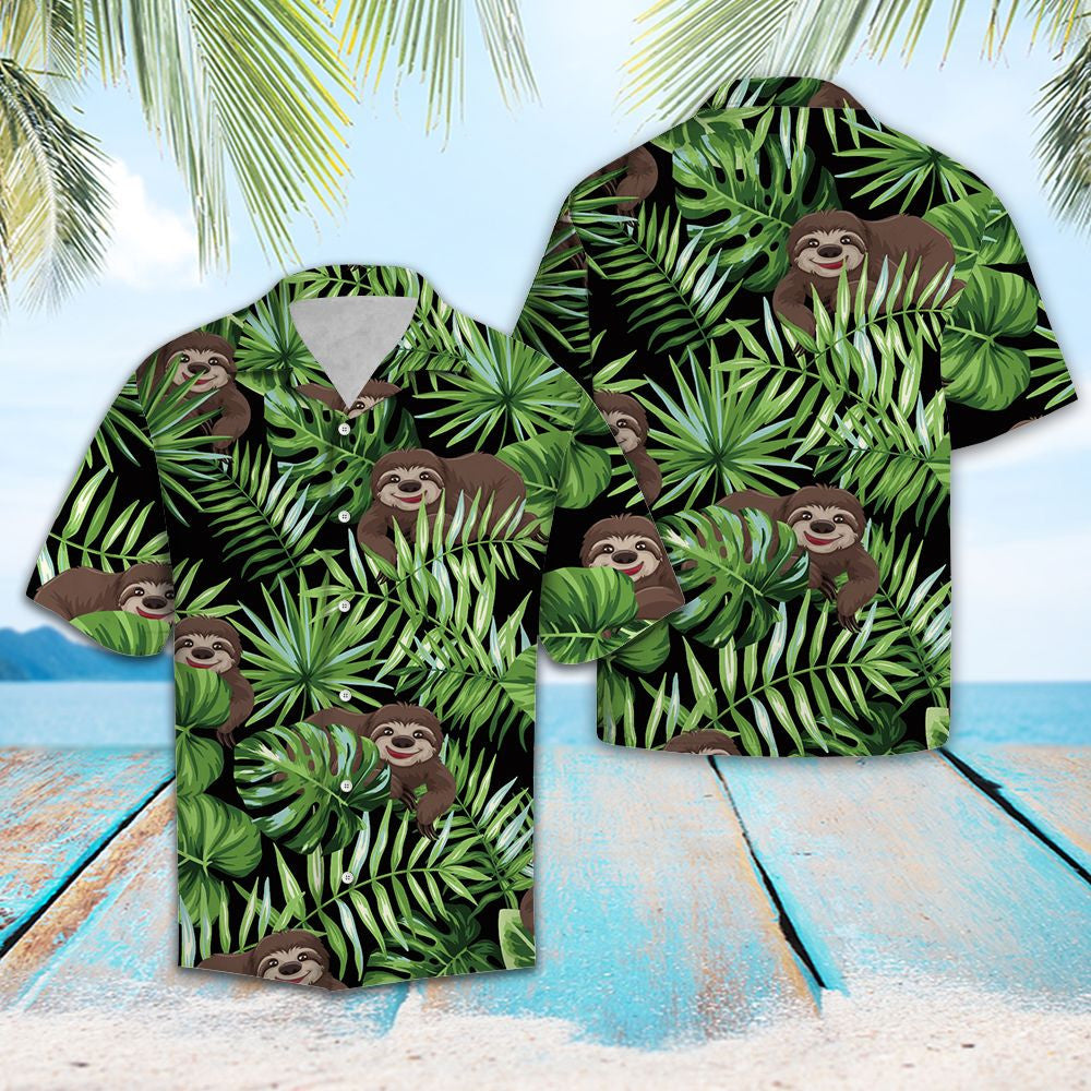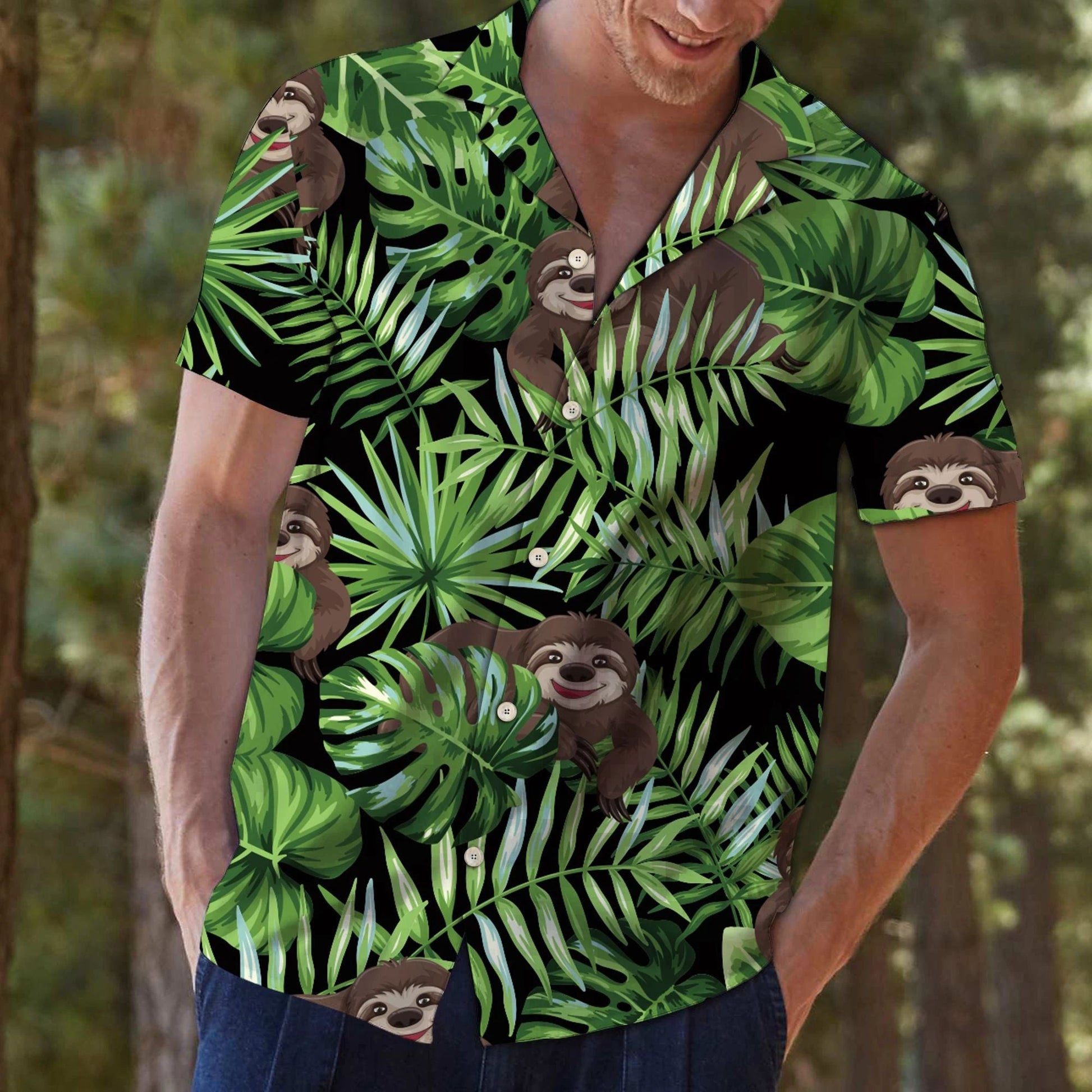 Sloth Álainn Le Duilleoga Glasa Trópaiceacha I Léine Dubh Haváís, Bronntanas Léine Haváíais, Bronntanas Nollag