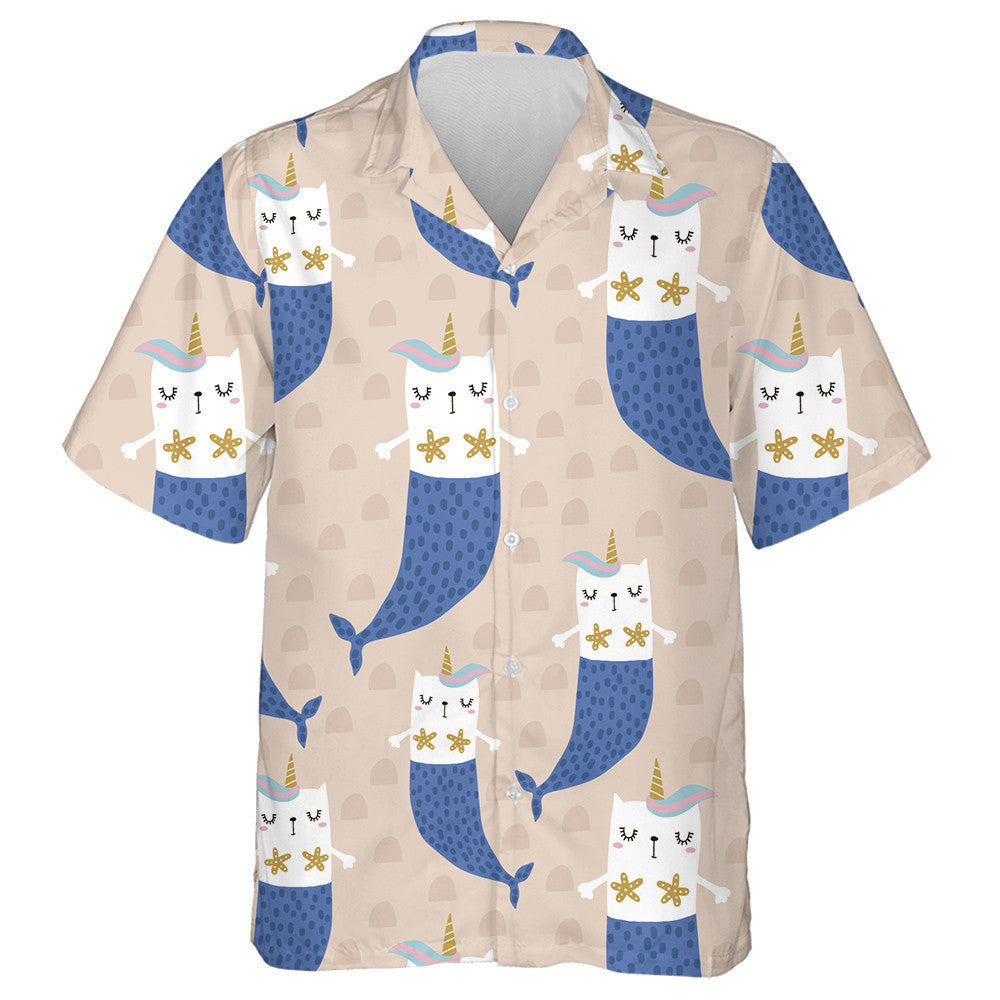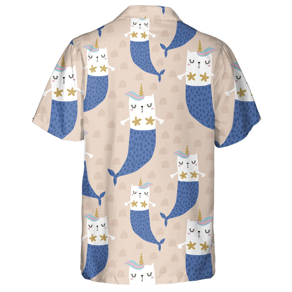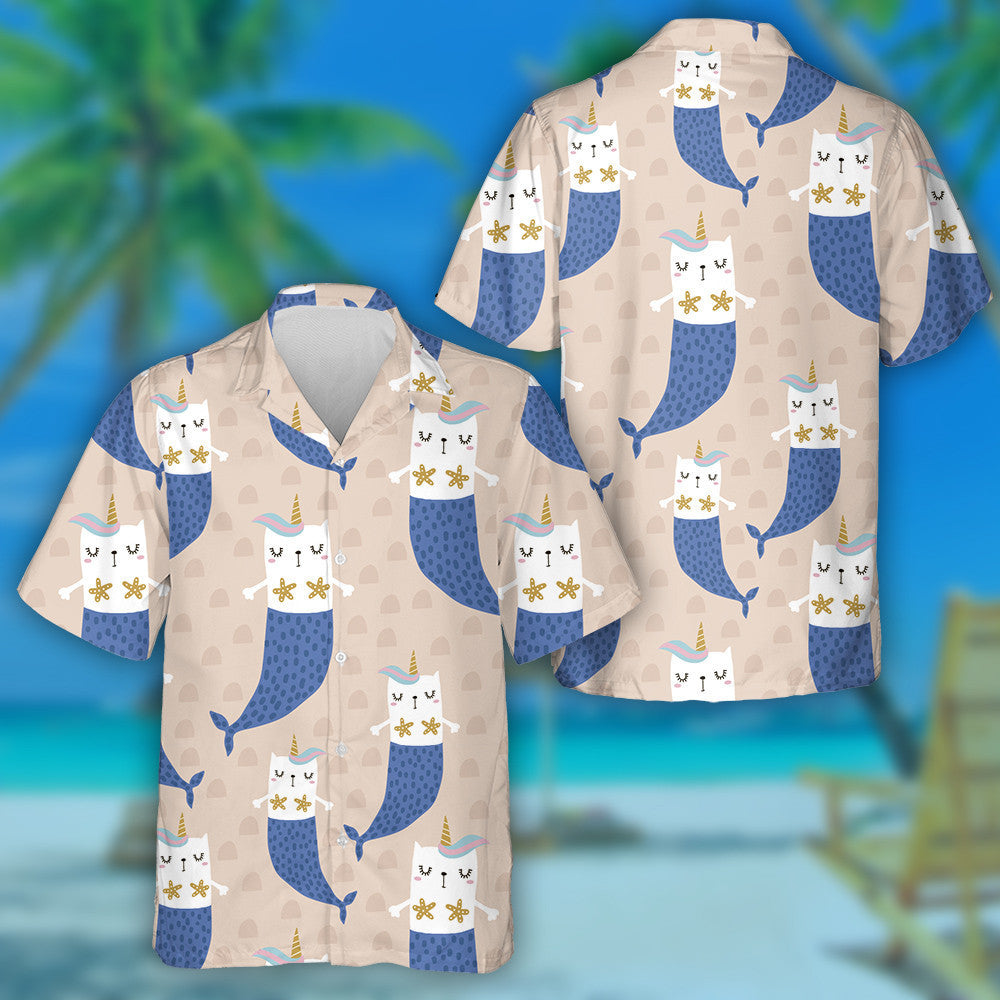 Maighdean mhara draíochta cat le adharca ar léine bándearg Haváís, bronntanas Léine Haváís, bronntanas Nollag