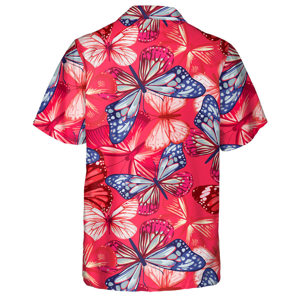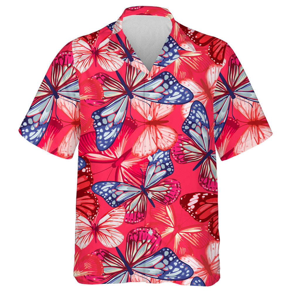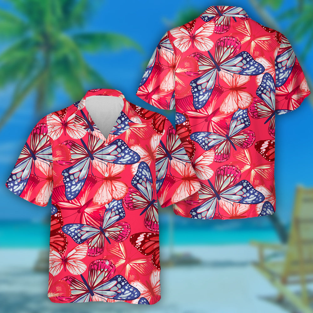 Stíl Mhuirí Le Féileacáin As Léine Haváís Dearg Agus Gorm, Bronntanas Léine Haváíais, Bronntanas Nollag