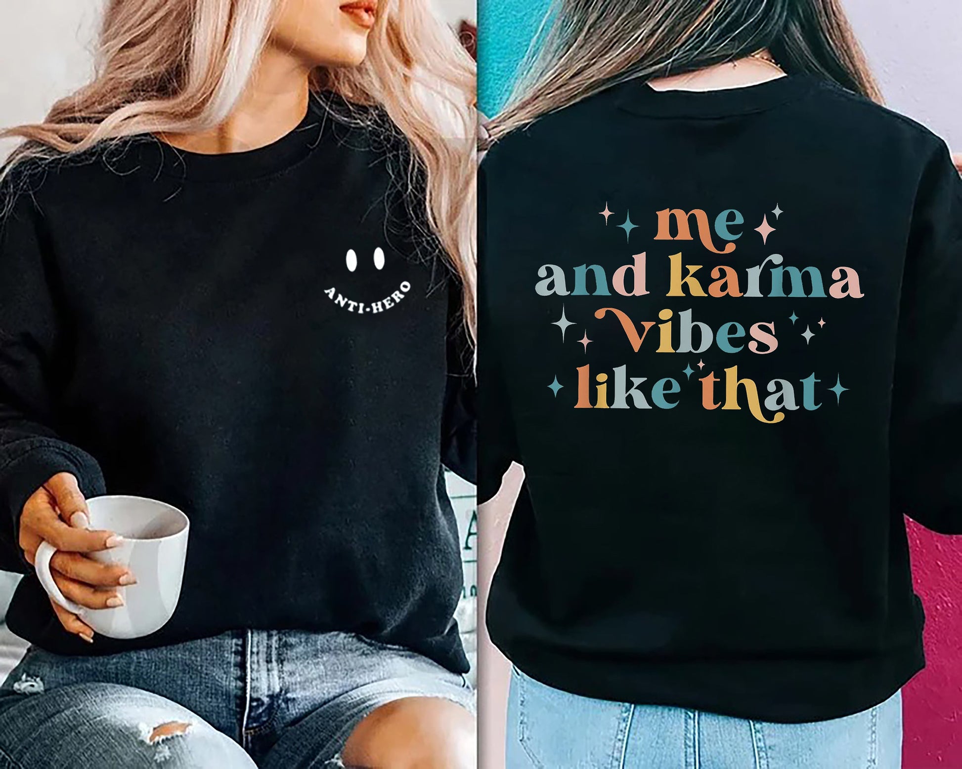 Is maith liomsa Agus Karma Vibe Sin Súilín Gréagach Cailíní Buachaillí Léine, Mise Agus Karma Vibe Mar an Léine Sin, Sweatshirt, Hoodie
