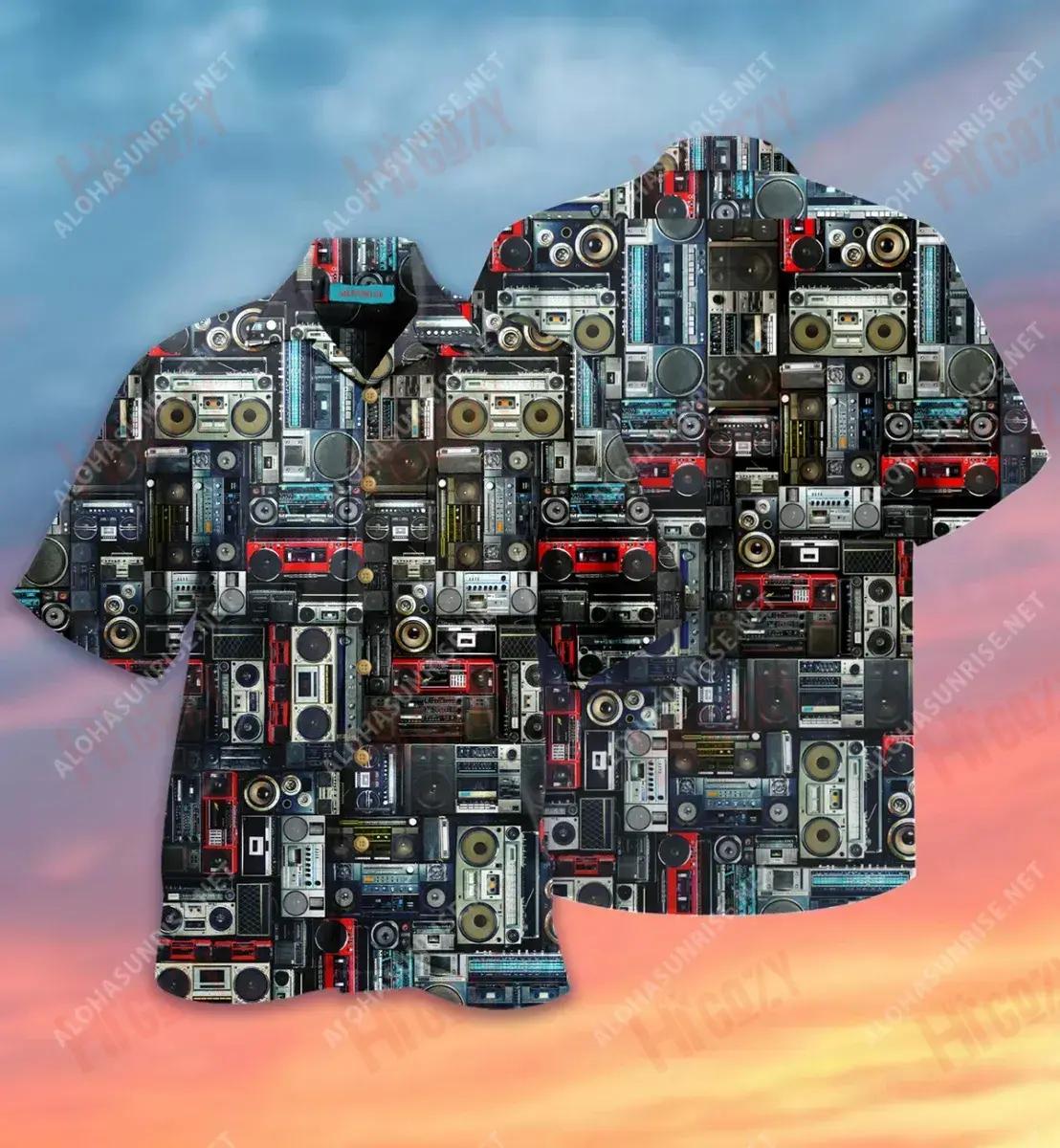 Léine Cuimhneacháin Boombox Raidió haváíais muinchille Aigéan Léinte Crazy Léinte haváíais do Mhná, Bronntanas Léine Haváís, Bronntanas Nollag