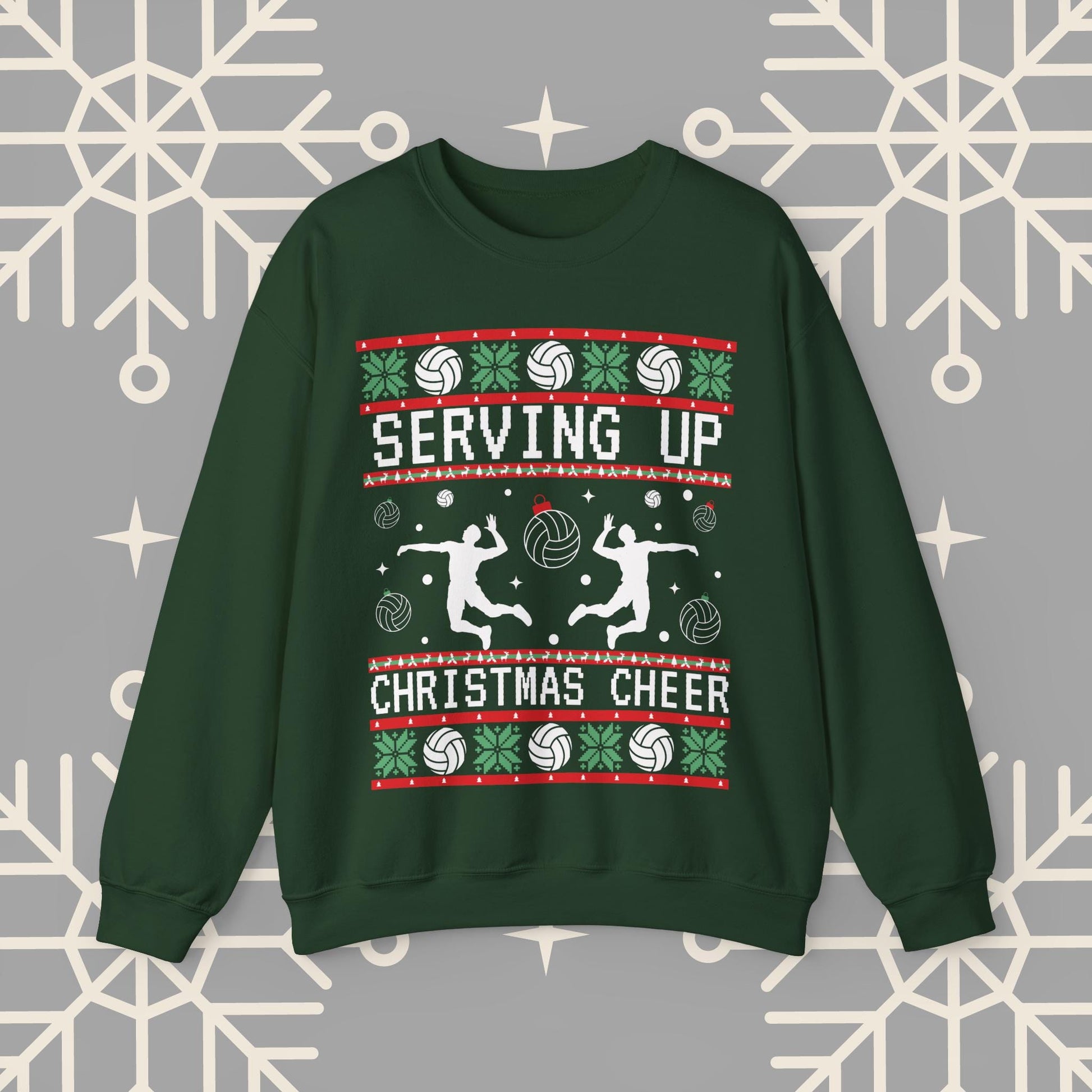 Men's Volleyball Ugly Christmas , Serving Up Christmas Cheer Sweatshirt, Volleyball Holiday Party Crewneck Jumper, Volleyball Gifts