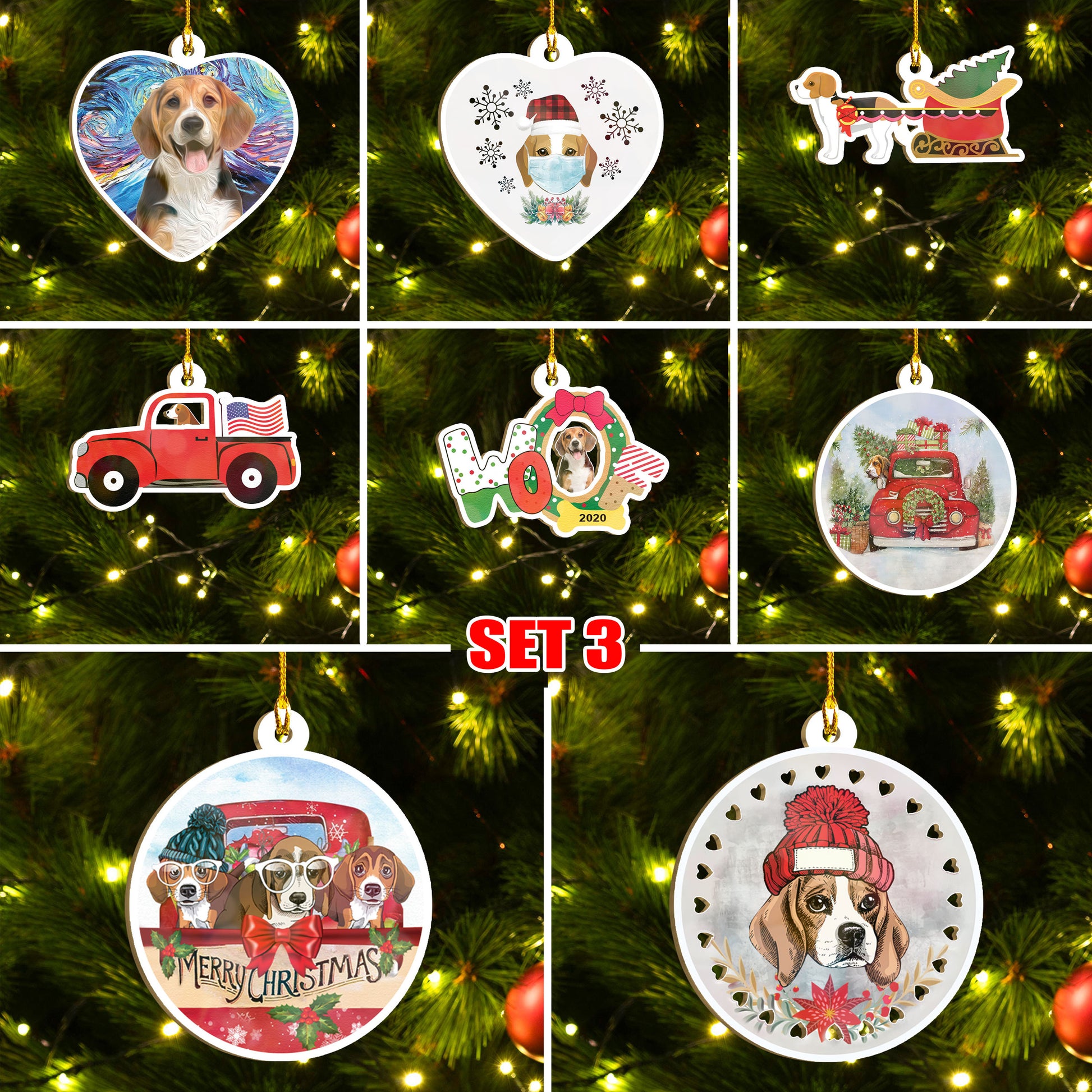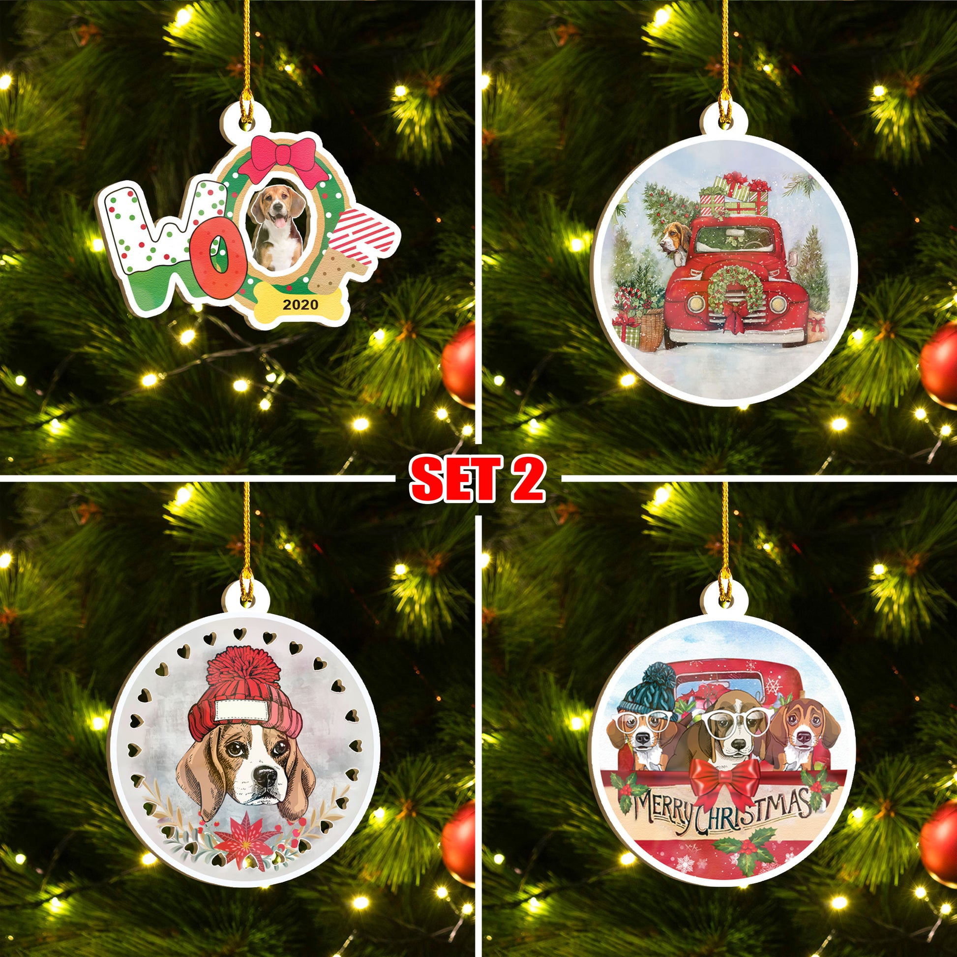 Seit Ornáide Beagle Nollag Shona, Seit Ornáide Woofmas Shona, Ornáid Greannmhar na Nollag Smaoineamh Bronntanais Teaghlaigh Do Leannán Madraí