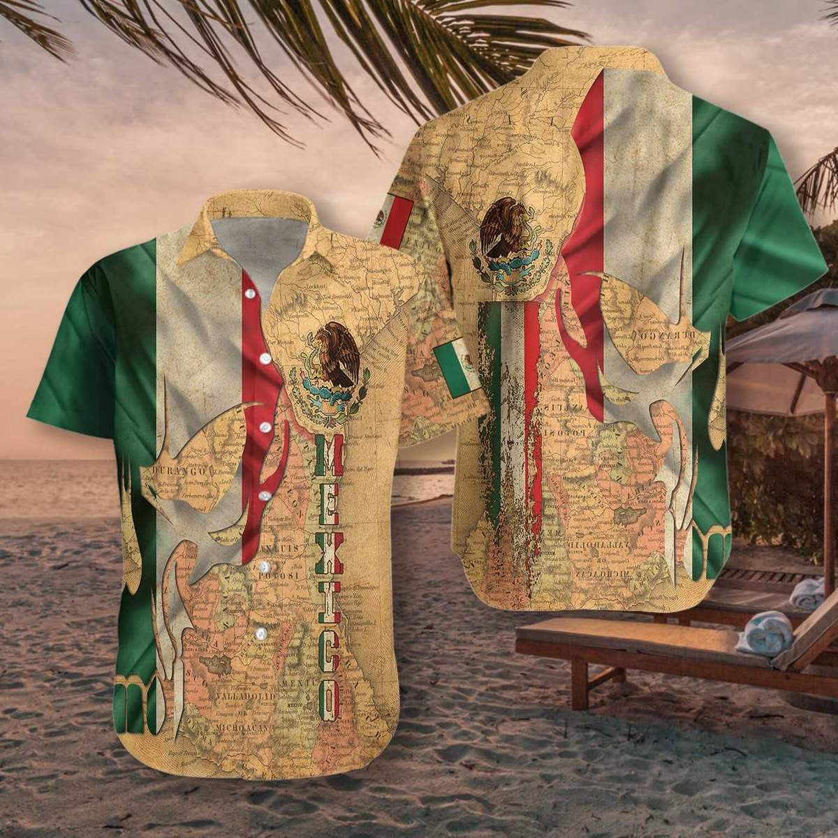 Meicsiceo Léarscáil Skull Bratach Cúlra Uafásach Dearadh Léine Haváís, Bronntanais Léine Haváíais, Bronntanas Nollag