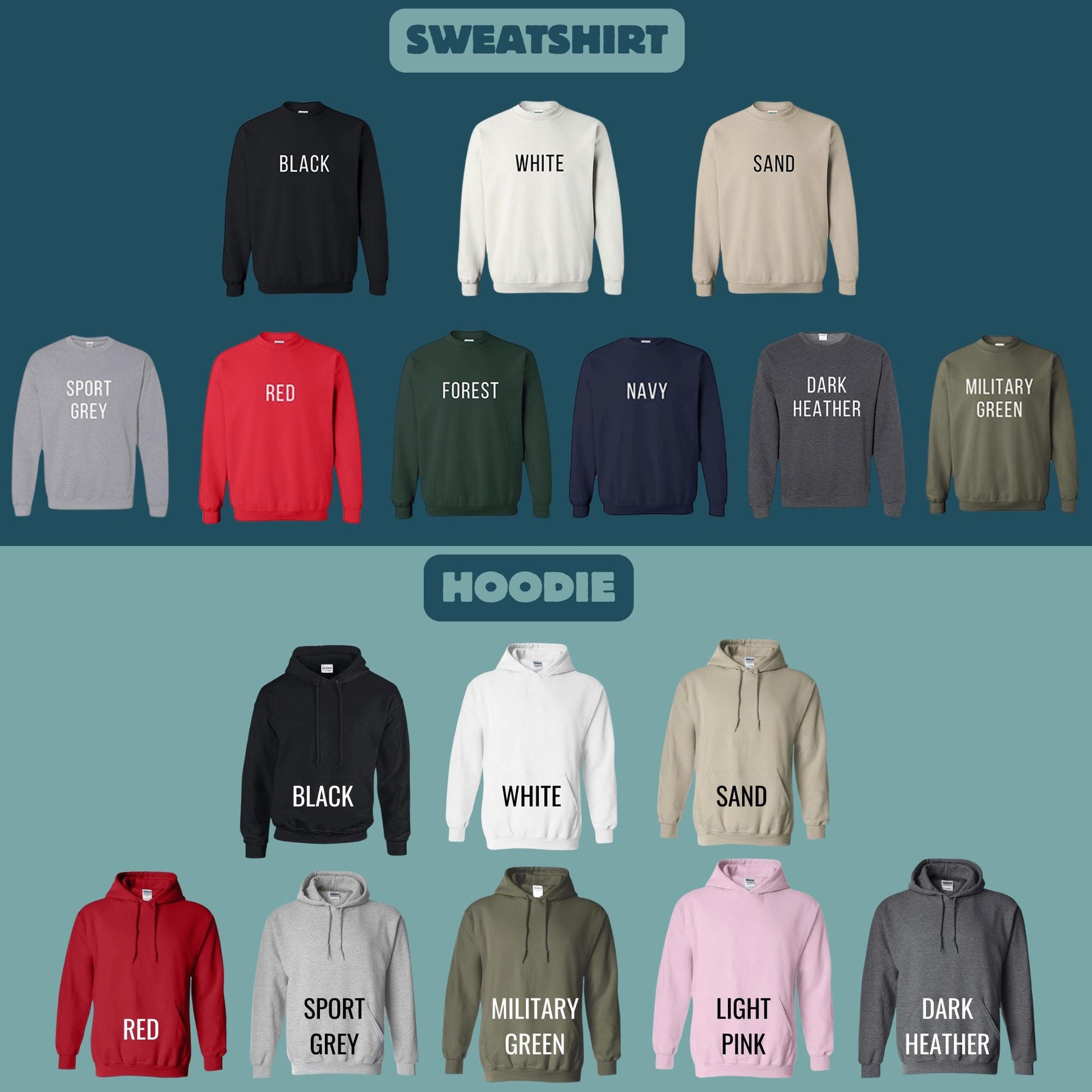 - 🧵 Fabric: Tees (solids) — 100% Cotton; Heather Grey — 90% Cotton / 10% Polyester; Other Heathers — 50% Cotton / 50% Polyester. Hoodies & sweatshirts use a soft, durable cotton-poly fleece that’s cozy and long-lasting.