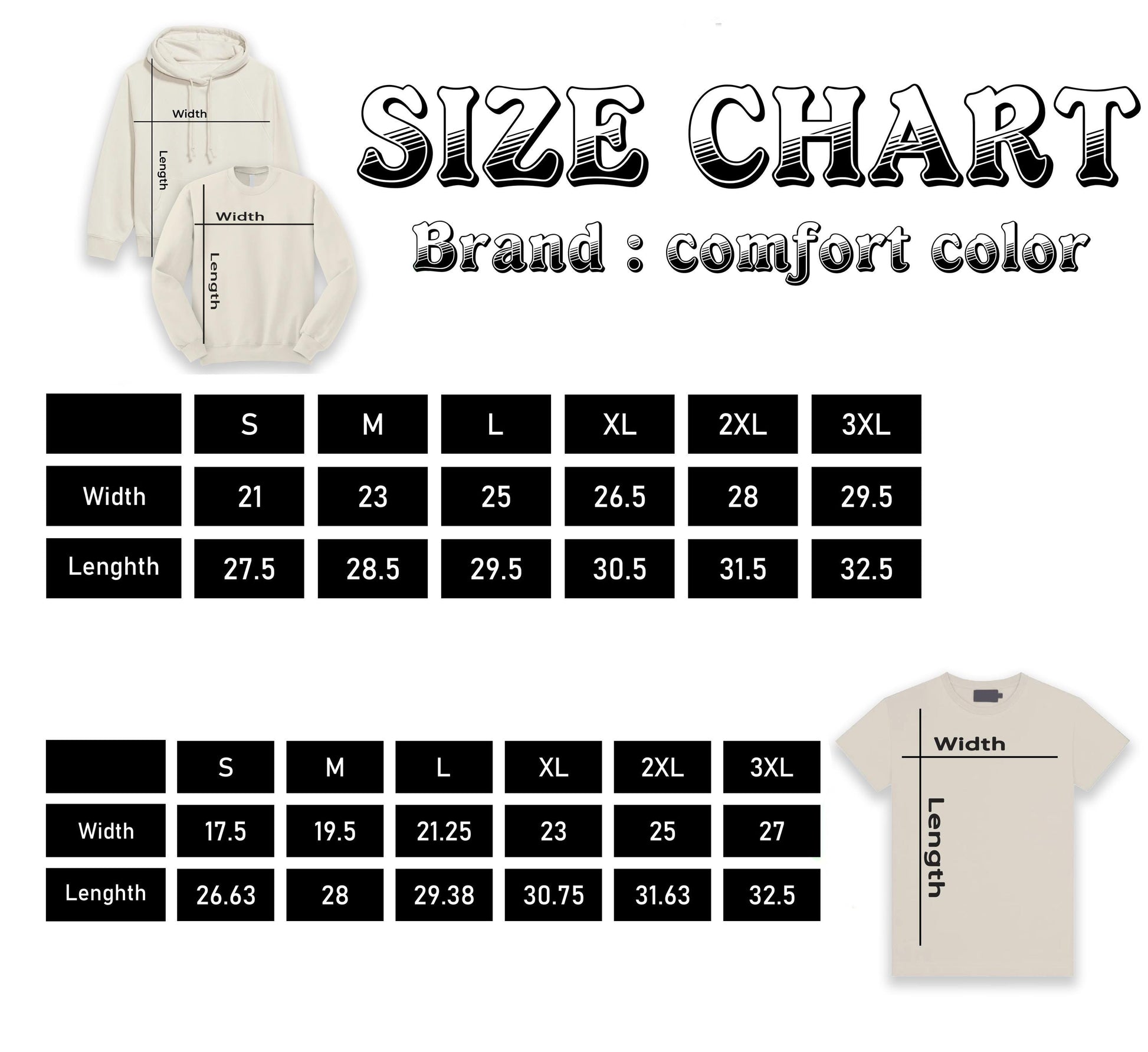 | SIZE | LENGTH (in) | WIDTH (in) | SLEEVE CENTER BACK (in) |