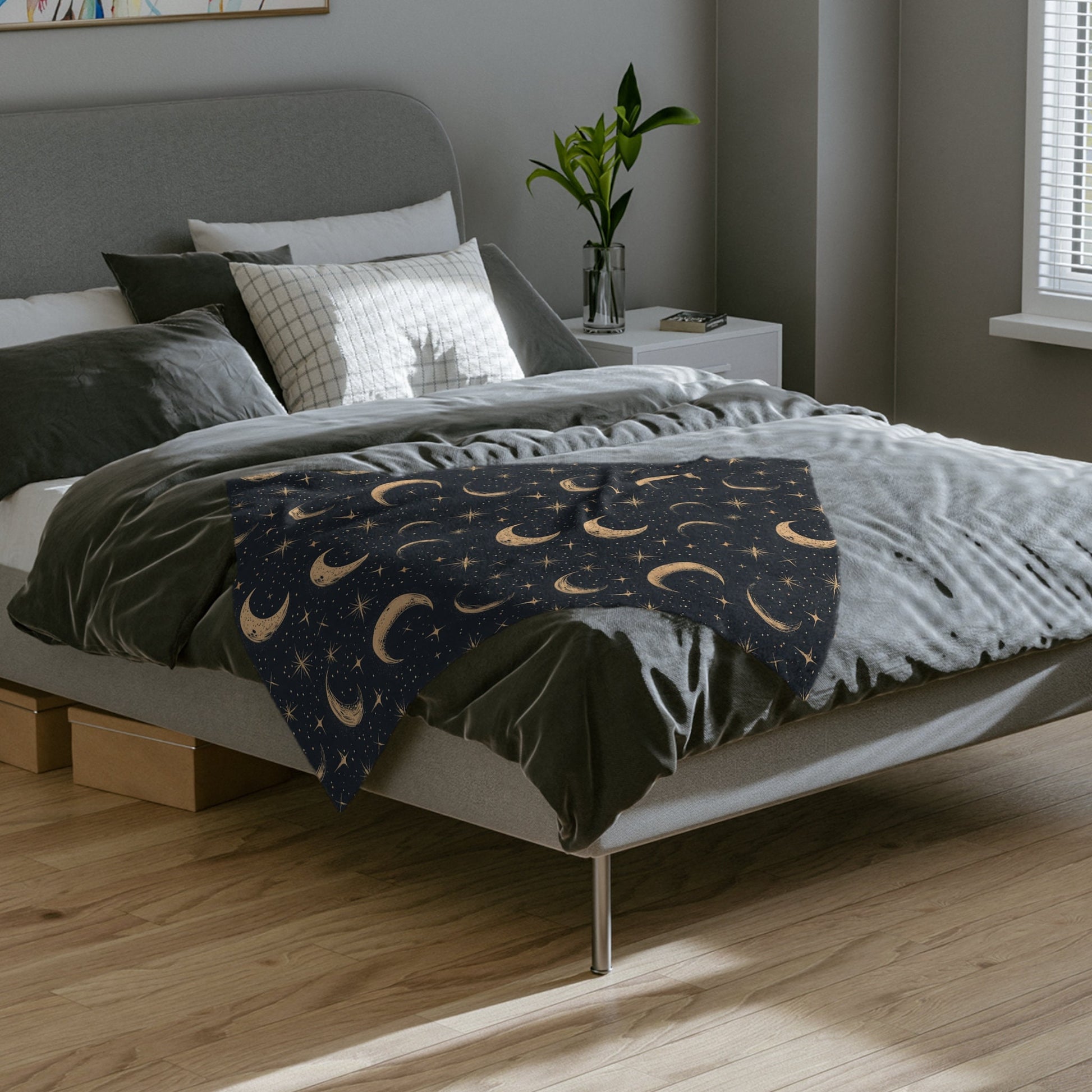 Moon and Stars Throw Blanket, Celestial Home Decor, Starry Night Sky Cover, Lunar Nursery Decor, Sun and Moon Fleece, Cosmic Bedspread