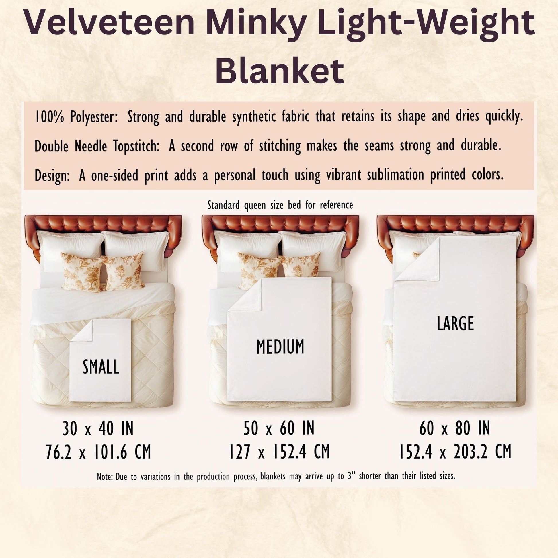 Material: 1 layer of plush fleece (100% soft, silky polyester) — lightweight, warm, soft, and wrinkle-resistant 🧵