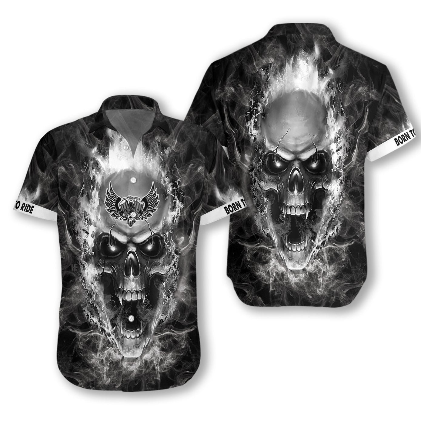 Bóthair Gluaisrothar Rí Patrún Scary Skull Cúlra Dubh Léine Haváís, Bronntanas Léine Haváíais, Bronntanas Nollag