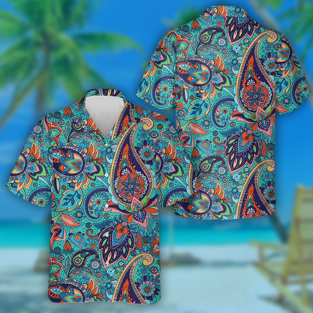 Patrún Paisley Traidisiúnta Ildathanna le Bláthanna Agus Duilleoga Léine Haváís, Bronntanas Léine Haváís, Bronntanas Nollag