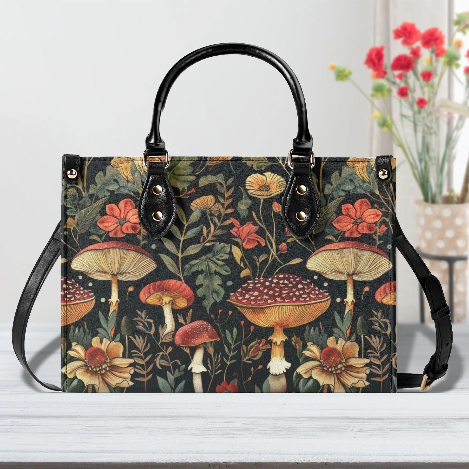 Mushroom Meadow Bag - Vegan Leather, Crossbody or Shoulder, Tote bag, large handbag, gift idea