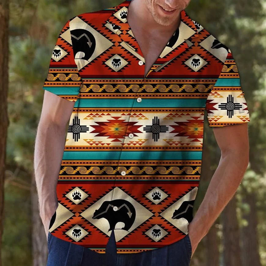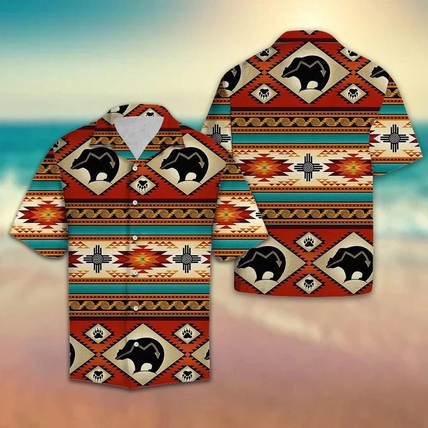 Léine Haváí Dúchasach Stíl Geoiméadrach ildaite Patrún Dubh Bear, Bronntanas Léine Haváís, Bronntanas Nollag