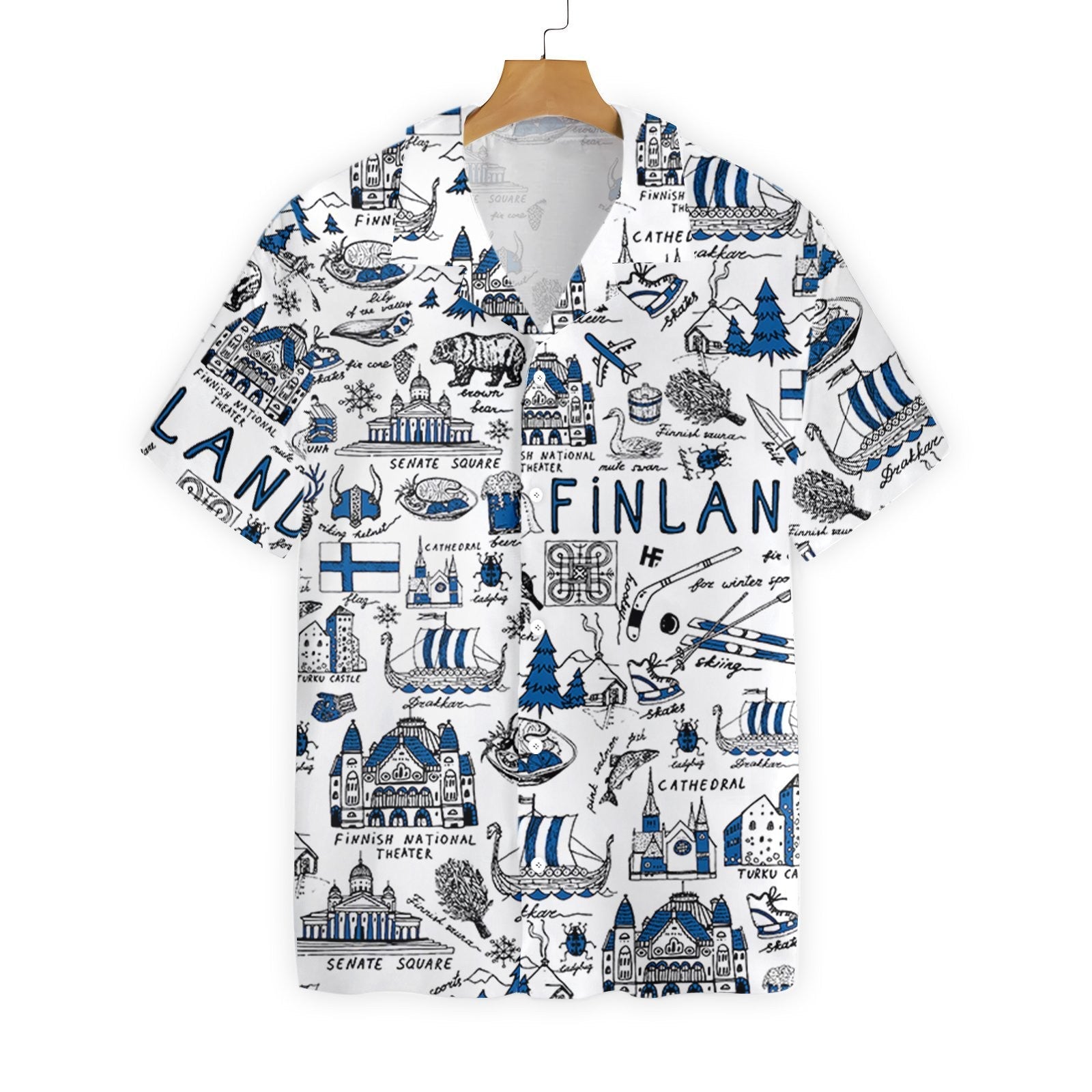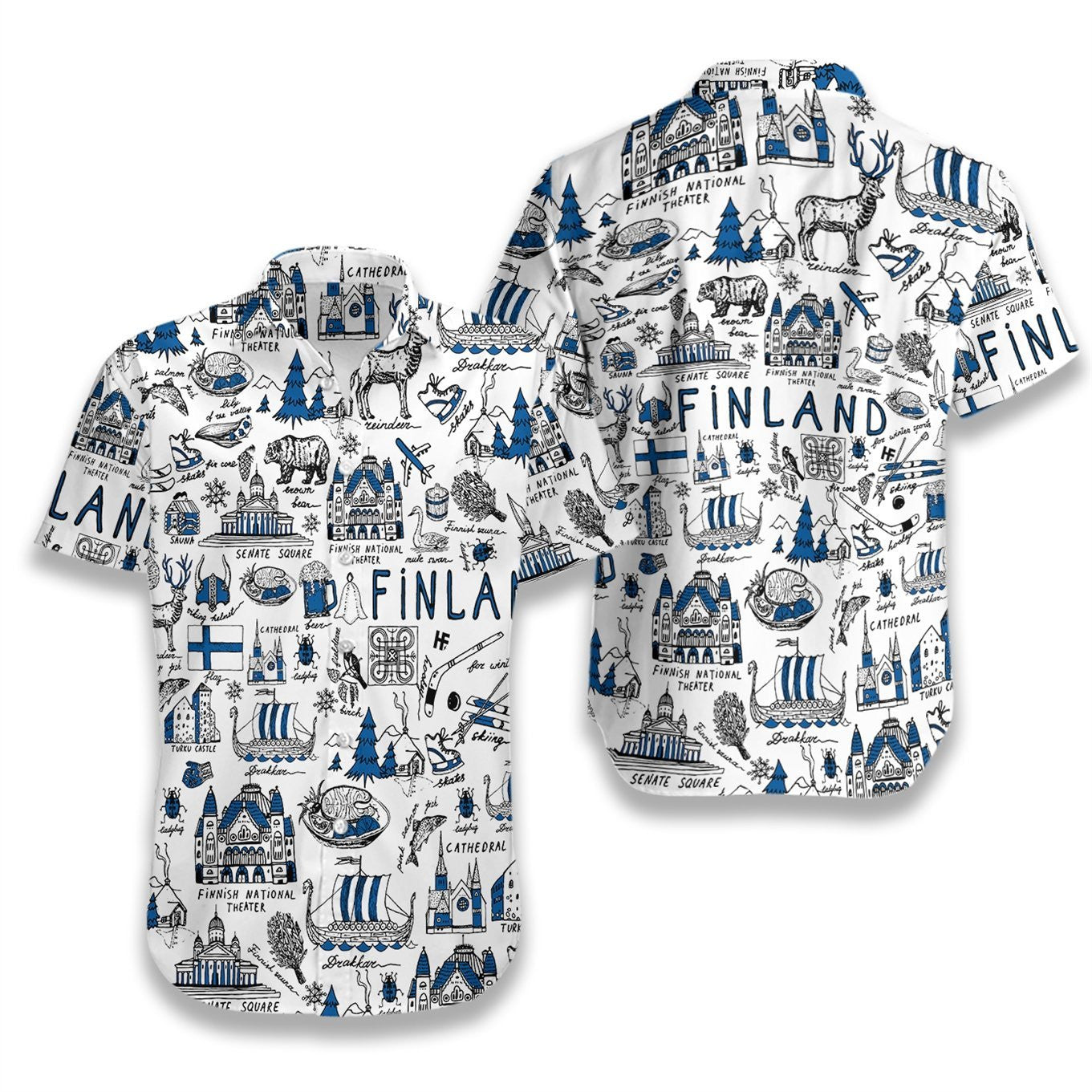 Dearadh Dubhghorm Agus Bán Léine Haváís Is breá liom an Fhionlainn Doodle, Bronntanas Léine Haváíais, Bronntanas Nollag
