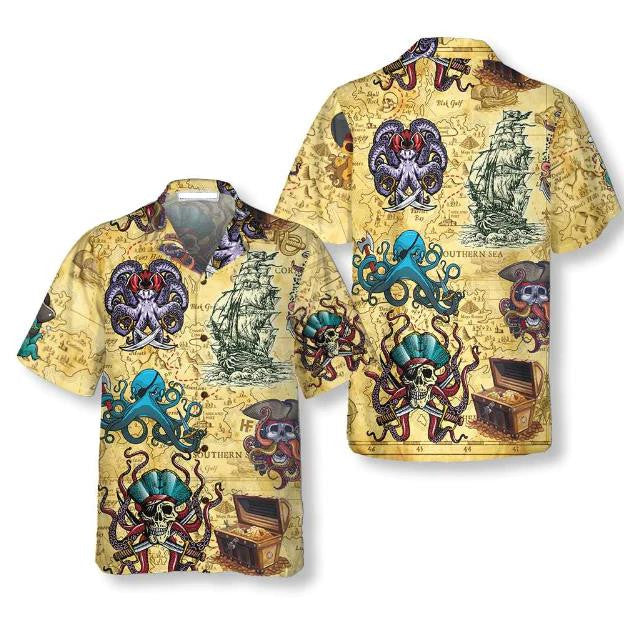 Patrún Long Tarraingthe Lámhdhéanta Octopus Pirate Léine Seanré Haváís, Bronntanas Léine Haváís, Bronntanas Nollag