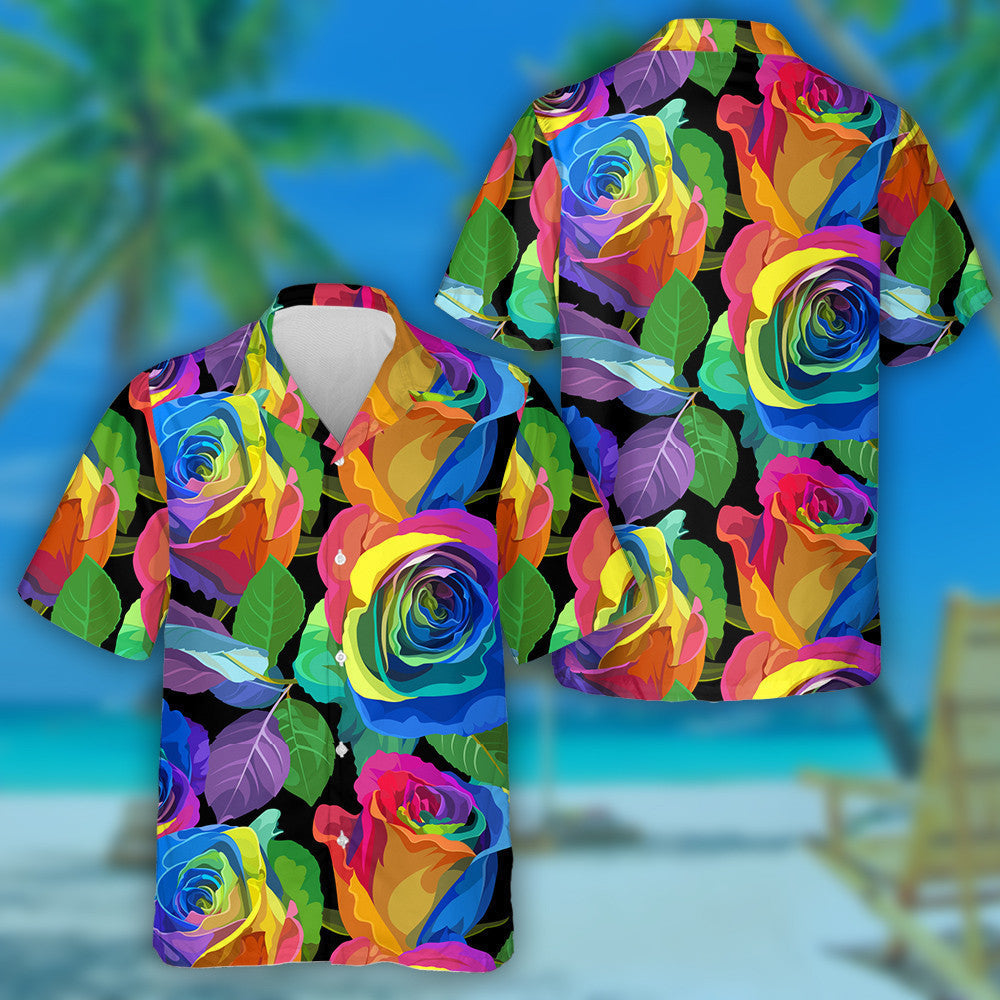 Péinteáil Ola Rósanna Ildaite Ar Chúlra Dubh Léine Haváís, Bronntanas Léine Haváíais, Bronntanas Nollag