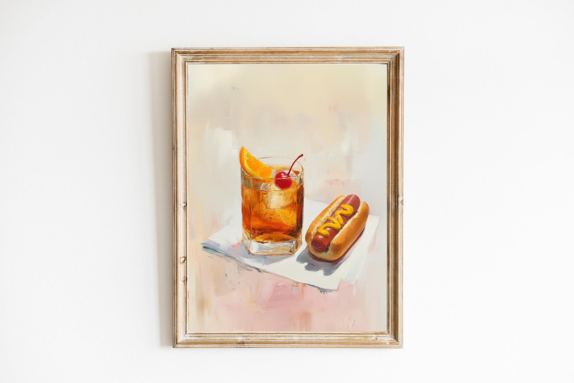 Old Fashioned with Hotdog Art Print | Cute Quirky Whimsical | Cocktail Art | Bar Cart Decor | Trendy Home Wall Art Gift | Funny Food Art