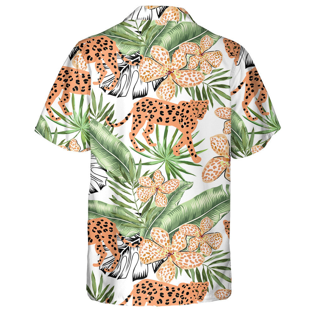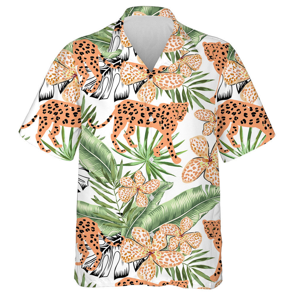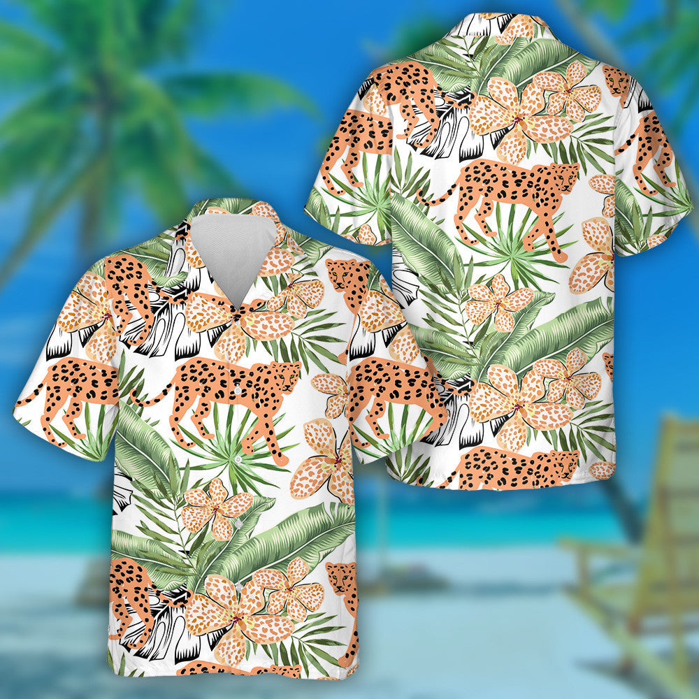 Ainmhithe Liopard Oráiste Agus Duilleoga Palm Banana Glas Léine Haváís, Bronntanas Léine Haváís, Bronntanas Nollag