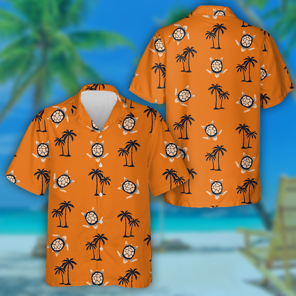 Crainn Pailme agus Turtar ar Chúlra Oráisteach Trópaiceach Léine Haváí, Bronntanas Léine Haváíais, Bronntanas Nollag
