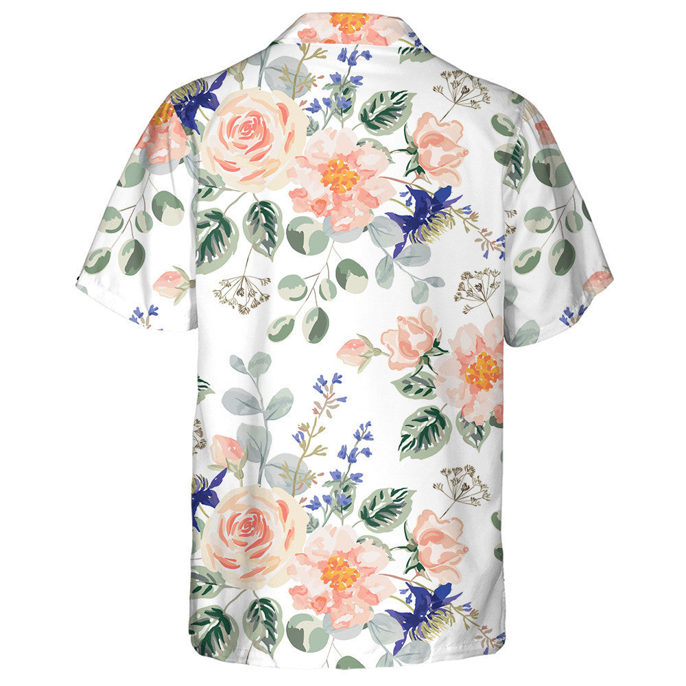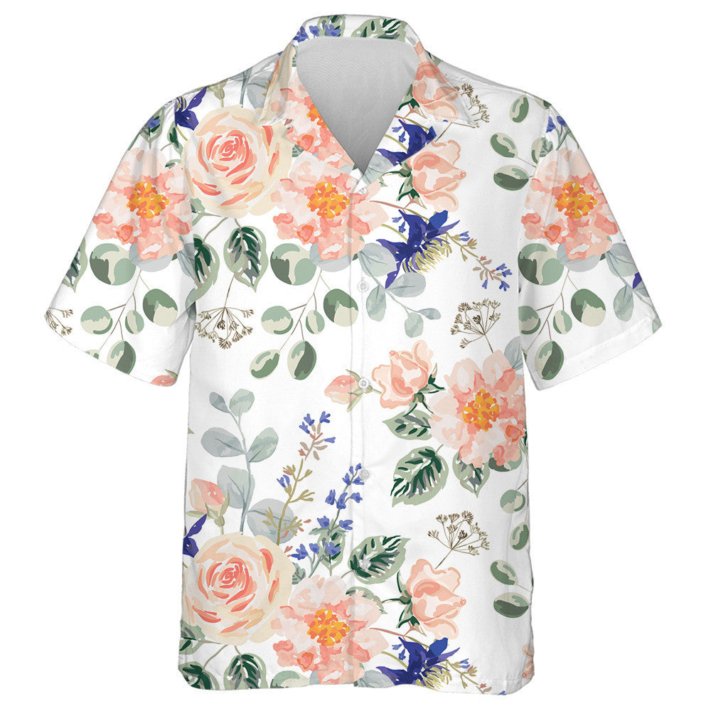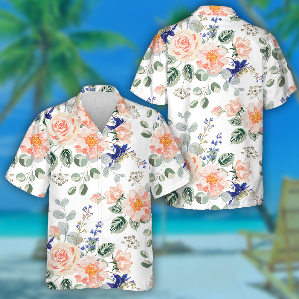 Bláthanna Pastel Rose Duilleoga Glasa Bouquets Dearadh Uiscedhathanna Léine Haváís, Bronntanas Léine Haváís, Bronntanas Nollag
