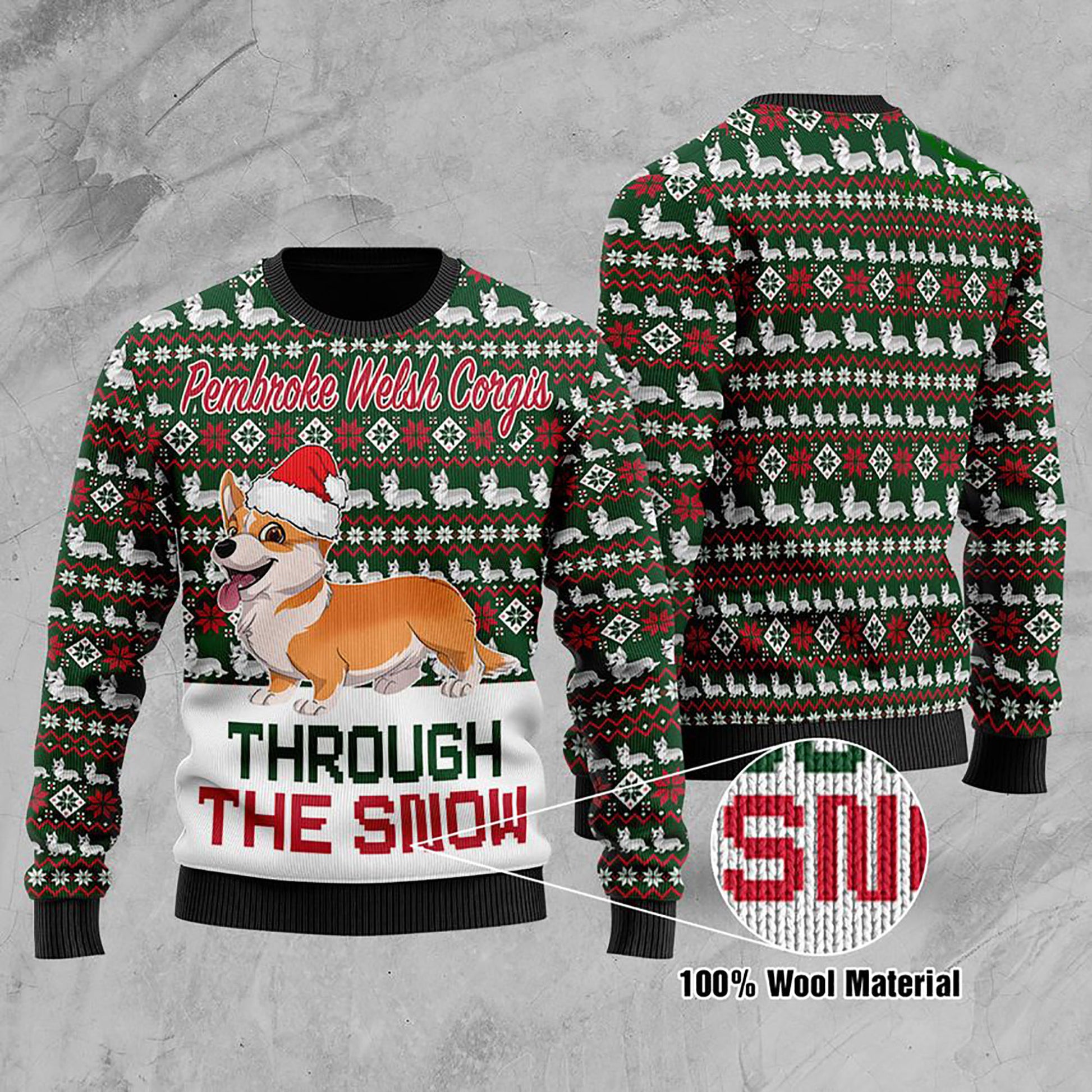 Pembroke Welsh Corgis Tríd an Sneachta Geansaí Gránna Nollag, Geansaí Gránna Nollag, Bronntanas Nollag,Bronntanas Nollag 2024
