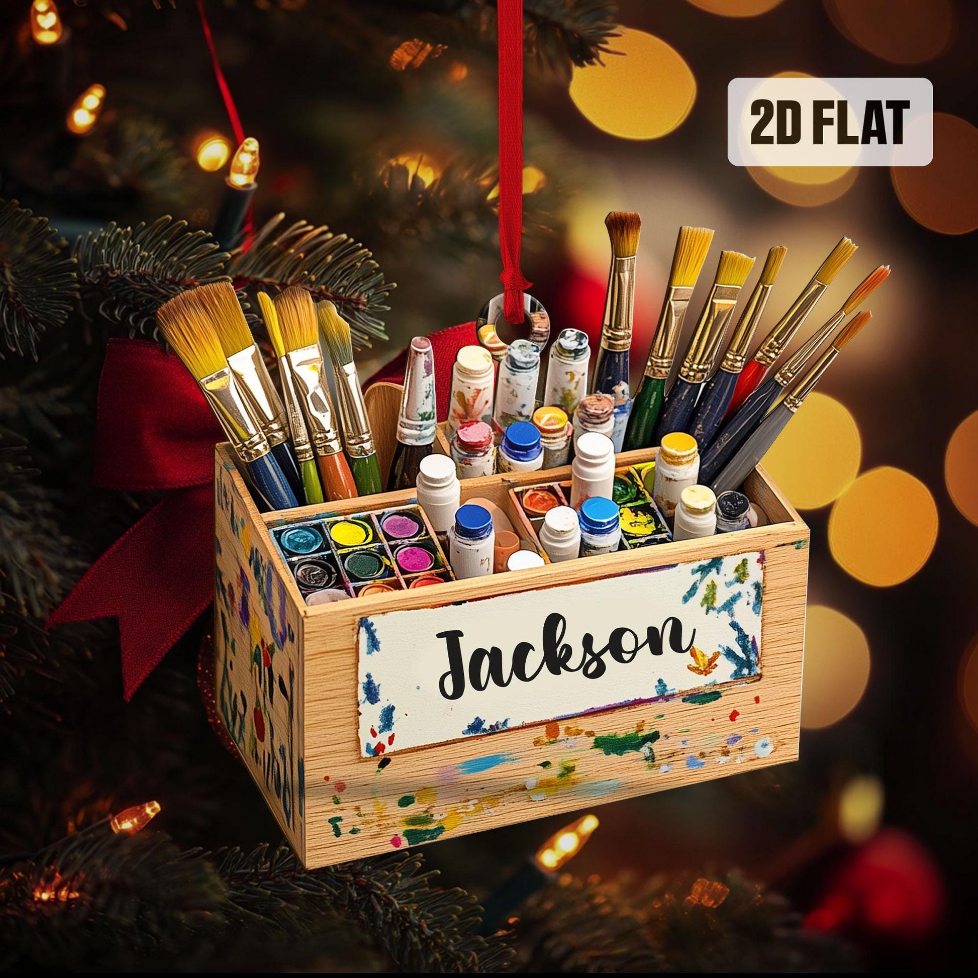 Personalized Artist 2D Flat Ornament, Custom Artist Christmas Tree Ornament, Art Teacher Ornament, Xmas Gift For Artist, Painters Gift