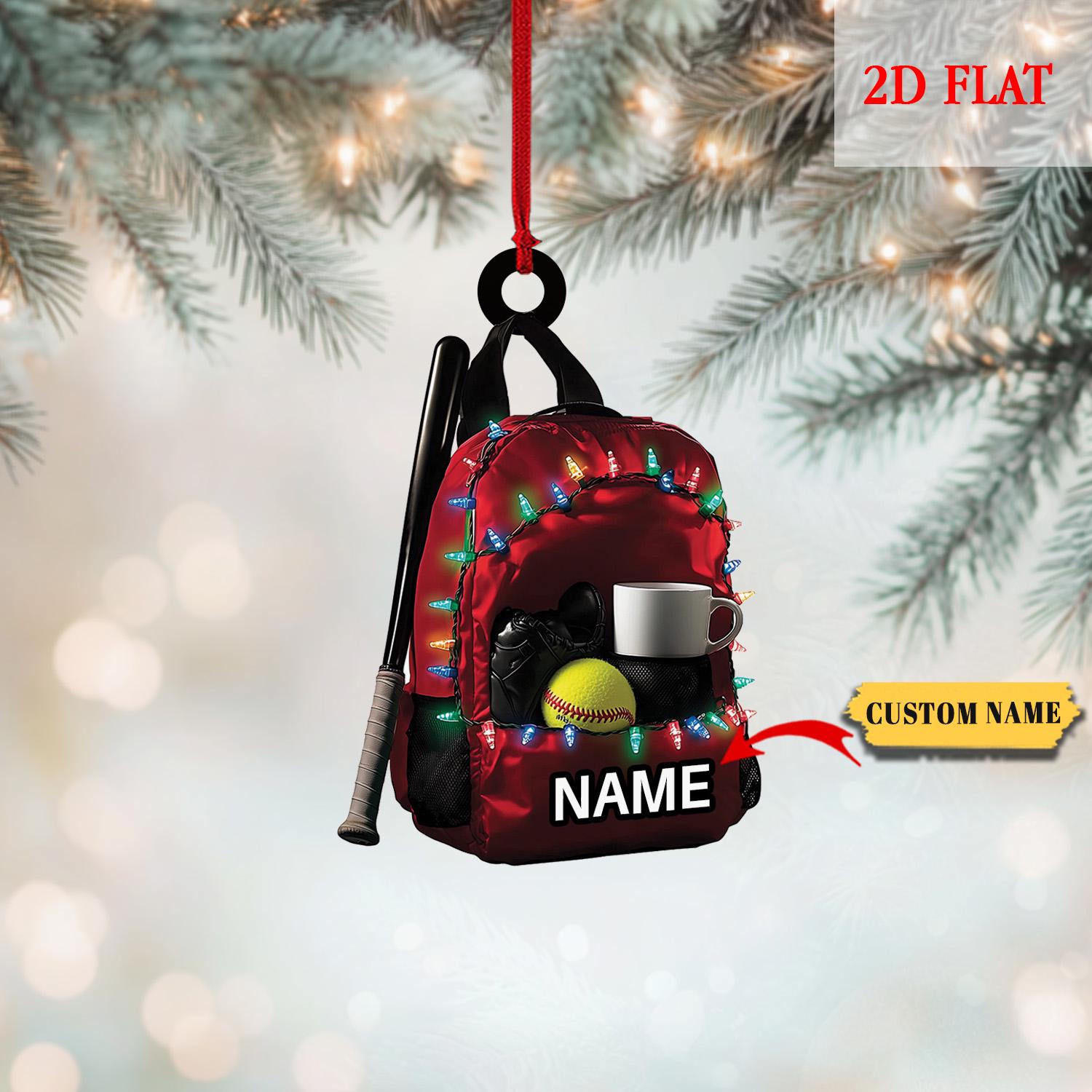 Personalized Baseball Bag 2D Flat Acrylic Ornament, Baseball Player Gear Ornament, Gift For Baseball Lovers, Baseball Christmas Ornament