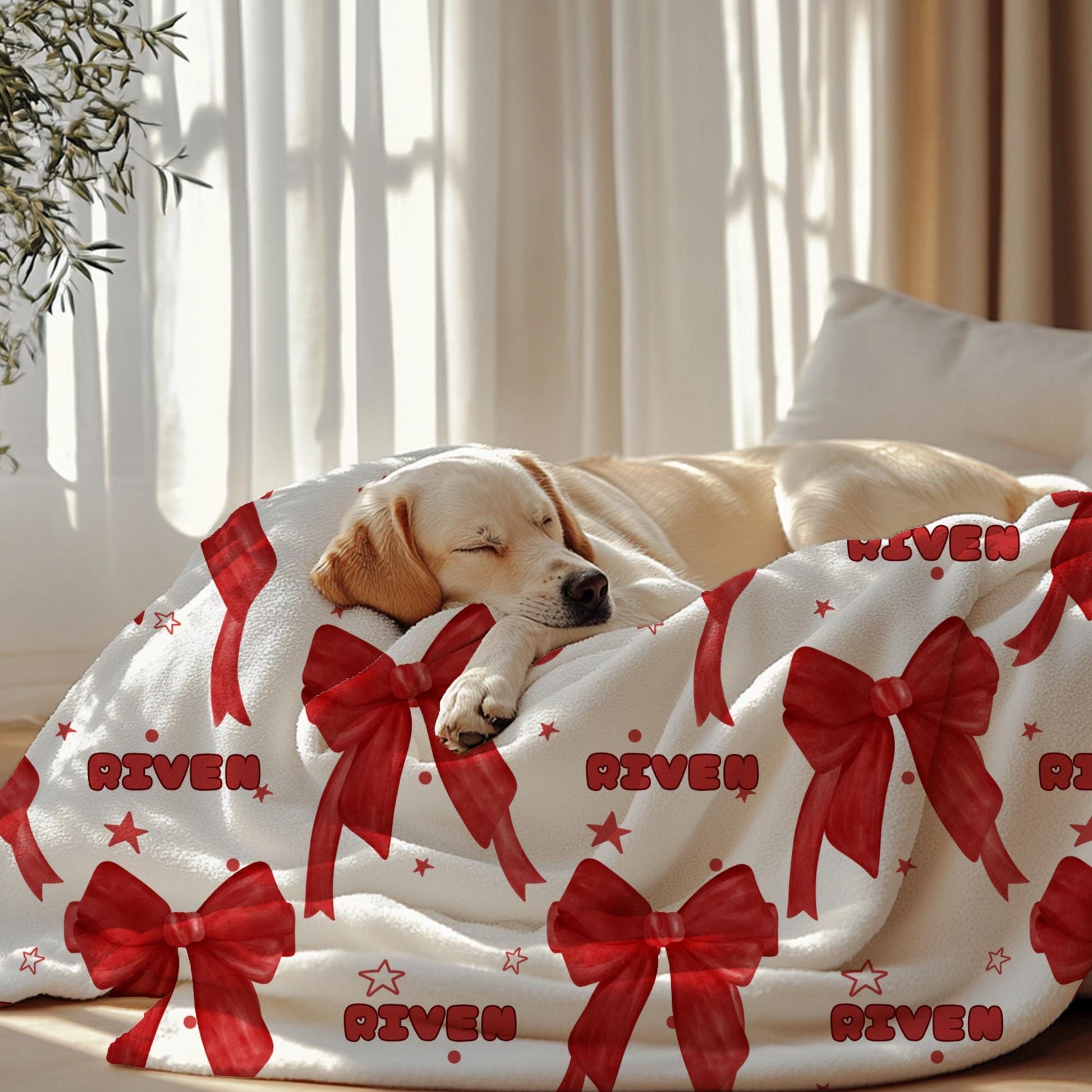 Personalized Blanket - Velveteen Custom Name Throw - Red Coquette Bow Blanket - by Harbor Island Decor