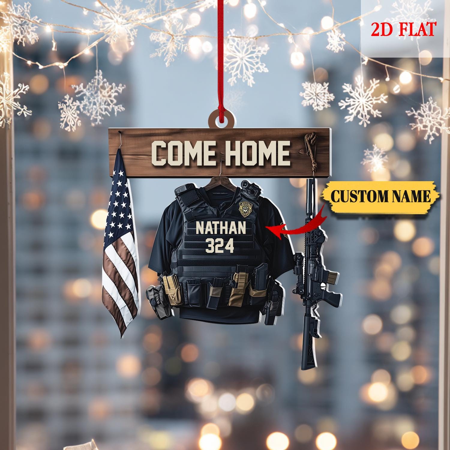 Personalized Bulletproof Police Vest Ornament Office Decor, Police Outfit 2D Flat Acrylic Ornament Christmas Gifts, Gift for Dad, Husband